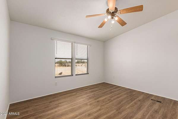 Welcome to this 4-bedroom, 2-bath home on a fenced 1.5-acre lot! You're greeted by an appealing open layout with vaulted ceilings with brand new interior paint and flooring throughout. New kitchen has new wood cabinetry and counters. Brand new stainless steel appliances with warranties. Split floorplan. MainNew AC 2021 bedroom includes a walk-in closet and a private bathroom, Outside, the vast outdoor space is framed by stunning mountain views, offering a blank canvas for your dream oasis or equestrian facilities New AC 2021 New Kitchen 2023 New roof 2023. New well pump 2023. New water Heater 2023 New interior paint 2023 New flooring 2023
