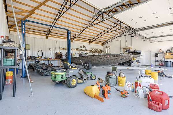 For hobbyists, professionals, or car enthusiasts, the property includes an impressive 1960 square feet of shop space equipped with a 10K lb. car lift, four garage door entrances, and a built-in tornado shelter, providing both convenience and peace of mind.