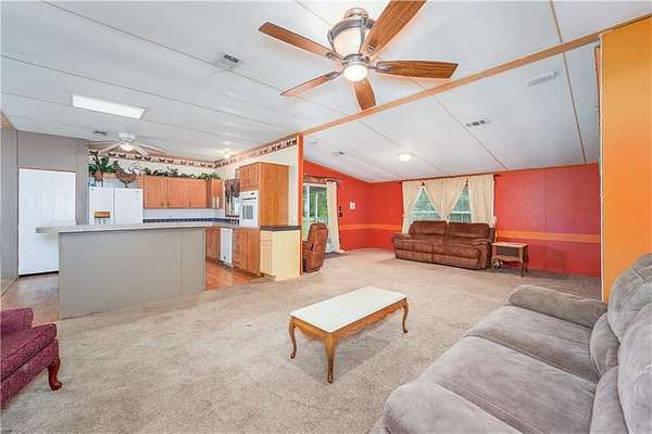 This spacious triple-wide home offers 2,688 square feet of living space and is situated on more than 20 acres along Kettle Creek. The home features 3 bedrooms and 2 full bathrooms with a roomy, open floor plan that includes a large living area, a functional kitchen with plenty of storage, and a comfortable dining space. The primary suite includes an ensuite bath with a soaking tub and walk-in closet, while the additional bedrooms provide flexibility for family, guests, or office space. A covered front porch provides a peaceful spot to relax and enjoy the views of the surrounding land. The property offers over 20 acres of open and wooded terrain with Kettle Creek running through it, perfect for those who enjoy the outdoors. The area is known for excellent hunting and abundant wildlife, including deer, turkey, and other native species, making it an ideal retreat for nature lovers and sportsmen alike. Call your favorite Realtor for a showing!