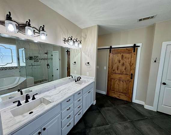 The outdoor amenities are a fully equipped outdoor kitchen--complete with a built-in grill, side burners, sink, and a fire pit--perfect for entertaining. The RV hanger and workshop offer ample space for recreational vehicles, tools, and projects, with 30 and 50-amp hookups ready to go.
