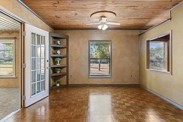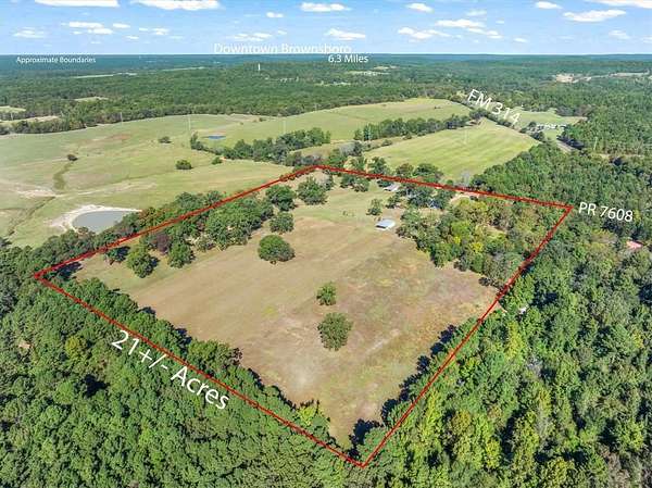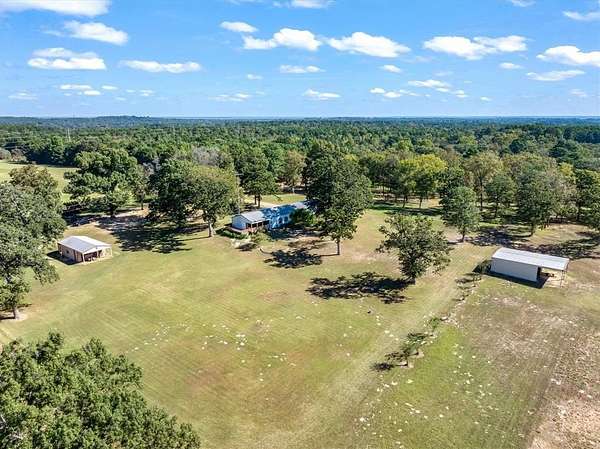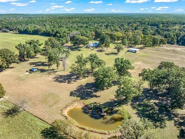 Experience East Texas country living at its finest at the very end of a private road on this stunning 21+ acres property with a pond, breath-taking views in every direction. The metal exterior 2132 SF home combines rustic character with all the comforts, featuring beautifully refurbished real wood parquet floors, shiplap ceilings, and a split mater layout. The open concept, living, dining kitchen makes this feel like home! Kitchen boasts custom cabinetry, while the master bath offers a relaxing soaker tub. Enjoy the serenity of the countryside from large front and back porches- perfect for watching wildlife or hunting deer right from your back porch! The insulated 24x36 shop with electric and a half bath makes the ideal workspace, while there also is a 30x45 barn and a greenhouse with water that makes the ideal space for gardening projects. Oversized two car garage with even more workspace. Additional updates and features are recent HVAC, metal roof, high speed fiber optic internet. Out of city limits and no restrictions so this property offers everything- privacy, functionality, and the peaceful lifestyle that only East Texas can provide! Brownsboro ISD