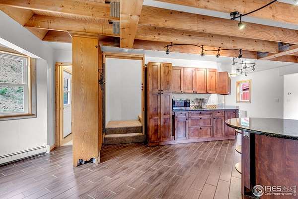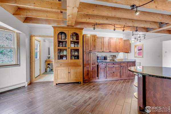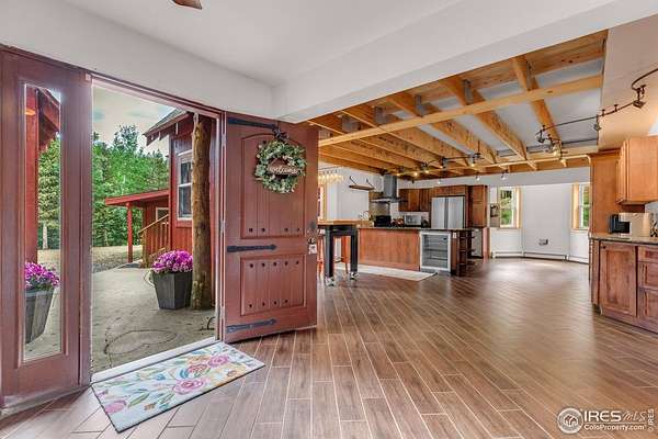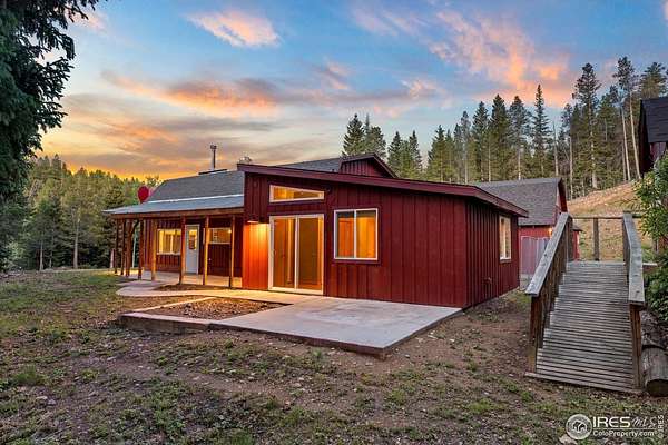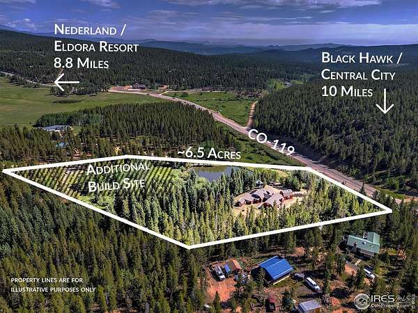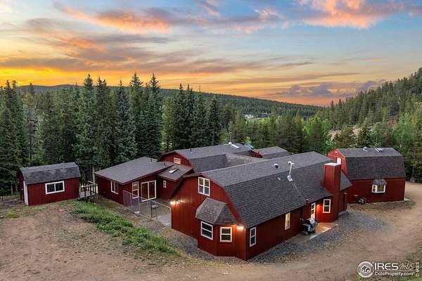 Trout Dance Ranch is a wild & wonderful mountain retreat where creativity, recreation & self-reliance meet. Spanning two separately deeded & buildable parcels - each with its own well permit - this rare offering combines live water, income potential & lifestyle versatility. Whether you're dreaming of a short-term rental setup, hobby farm, alternative wellness retreat or artist's hideaway, this is a space that invites imagination. The original 1965 barn-style home, expanded in 2011, offers a flexible floor plan ready to finish to taste. A large entertainer's kitchen flows into the main living room, where vaulted ceilings & a wood stove create a warm gathering hub. A spacious family room, two primary suites (one with updated bath & dual closets), and a loft-style third bedroom in the northern wing provide ample room for guests, multigen living or remote work. In the southern wing, a concealed entry opens to nearly 800 sqft of hidden loft space above the kitchen & primary suite - ideal for a game room, media lounge, or private retreat. Outside, the magic continues. A spring-fed, trout-stocked lake anchors the property, bordered by aspen groves & visited by moose, elk & hummingbirds. A handcrafted beach, boat launch, & whimsical gazebo with barbacoa pit create a unique lakeside gathering spot. A year-round artesian spring supports the land, which also includes a chicken coop, trail network, & a repurposed shipping container "ham house" - perfect for a recording studio or creative outpost. An oversized 2-car garage includes workshop space & lofted storage. Additional building sites offer room to grow - think guest cabins, yurts or more. Fiber internet is available at the road, and the property sees excellent sun exposure for solar potential. Located just off paved Hwy 119 with flat access to Nederland, Eldora & the Front Range, this is a rare chance to own live water & create your own mountain lifestyle playground.