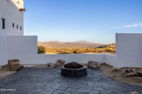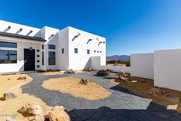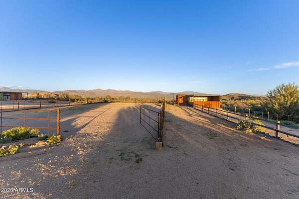 This is it! Escape the hustle and bustle of the city and embrace the beauty of country living on your 2.2 acre lot. This exceptional property features a 4-car garage and private courtyard with a cozy fire pit, perfect for relaxing under the stars. The expansive yard offers a covered patio, breathtaking sunsets, and panoramic mountain views. Equestrian amenities include a large arena, tack room, stalls, and corral, making this incredible value a horse lover's dream! High-end finishes, a blend of wood and tile, tons of natural light, tall ceilings, and thoughtful design choices create a luxurious yet welcoming feeling. The elegant kitchen, wood burning fireplace in the primary suite, a true 4 bed and 4 bath home make day-to-day living comfortable. On the roof, enjoy your view deck and solar!