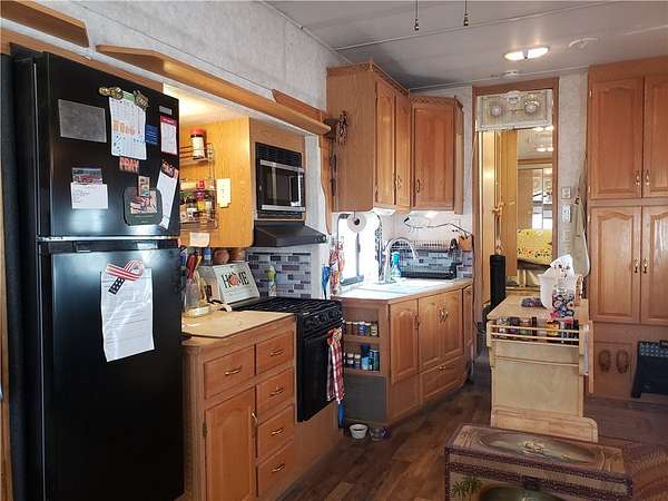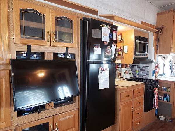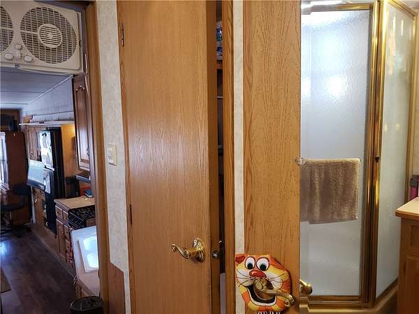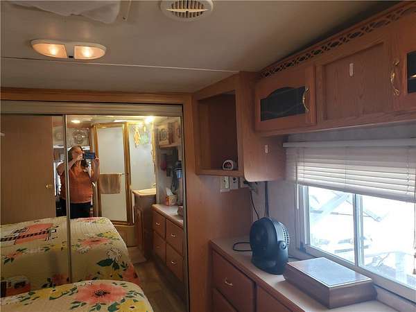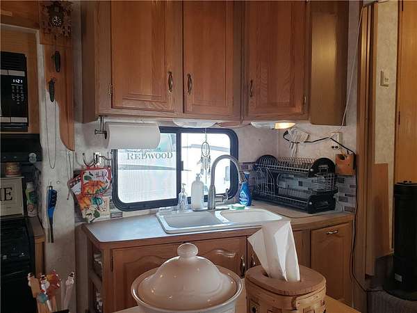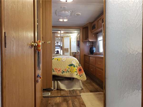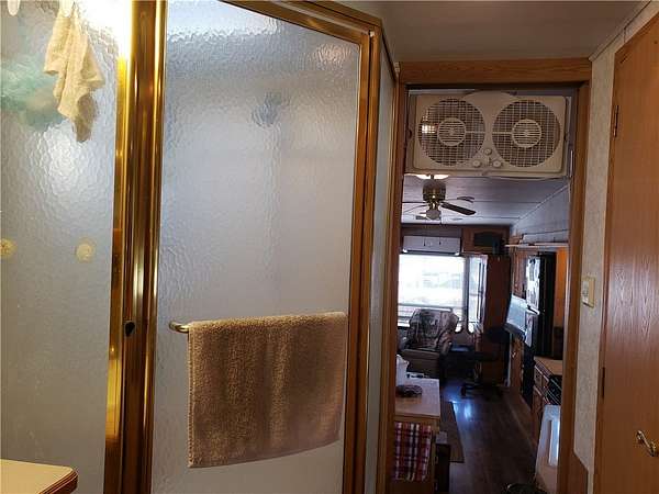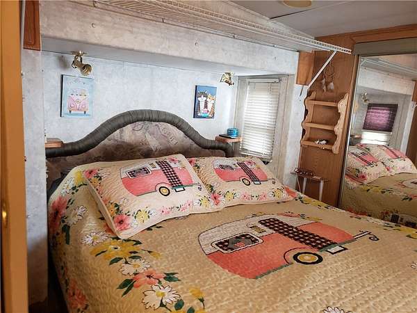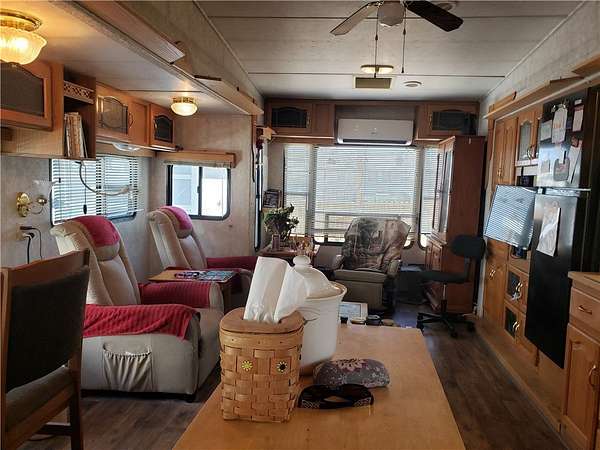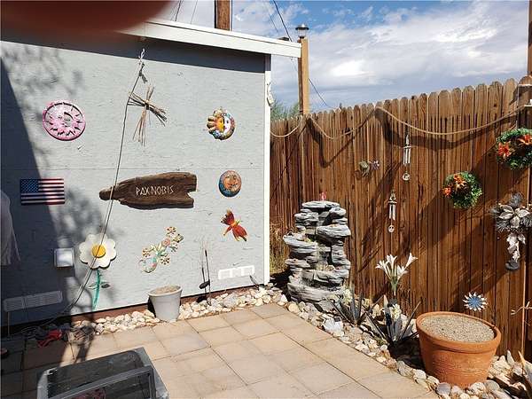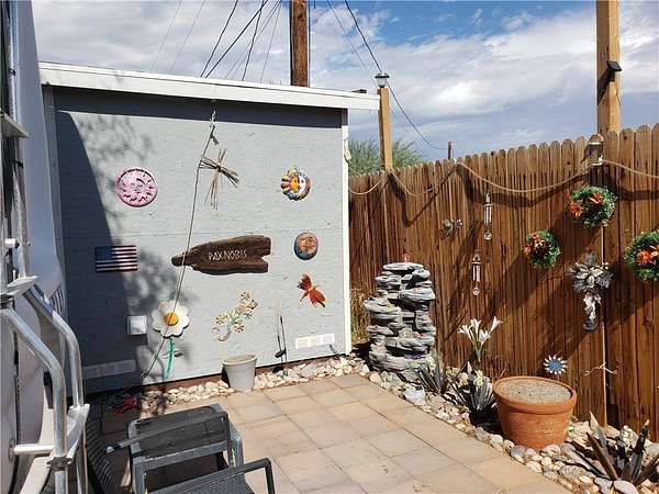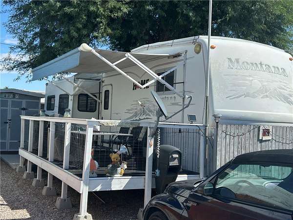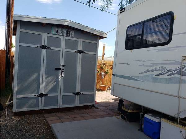 36 1/2 foot fifth-wheel tiny home for sale. This home is situated on a shaded lot in the San Gennaro Riverfront RV Park on the Colorado River in Bullhead City, Arizona. Amenities include access to the Colorado River by a private boat launch, beach, and dock. Views from the 8x20 deck give glimpses of the Spirit Mountain Wilderness and the Colorado River. The cozy, shaded back patio garden features a waterfall, a fire bowl, and a misting system. An 8x8 shed houses a washer, a dryer, and ample storage. Parking for two vehicles is provided in front of the home. The living area is surprisingly roomy due to the dual, opposing sliders. Laminate flooring has been installed throughout the home. Three recliners, a four-seat dinette, a built-in desk, and a free-standing china cabinet provide suitable accommodation. A residential mini-split heating and air conditioning system provides year-round comfort at a reasonable cost. The compact kitchen has a three-burner propane gas range and oven with an overhead microwave. A residential apartment-size refrigerator has 10 cubic feet of capacity. A hard-lined water filtration system treats the entire home. The bedroom/bathroom area has a respectable-sized shower, a small vanity, a large linen closet, and a residential flush toilet with a hard-lined sewer connection. The bed has a queen-size memory foam mattress on an adjustable frame with massage. A large hanging closet and built-in dresser with overhead cabinets give ample clothing storage. This tiny home has other unique owner-installed features that must be seen to be appreciated. Lot rent is currently $475/month, and the owner is responsible for paying propane and electricity. The electric bill has been under $50 during the cooler months and between $50 and $100 during the summer heat. After four years of comfortable living, the owners find it necessary to relocate. With the very reasonable asking price, this home is not likely to be on the market for long. Please call your agent for an appointment for a viewing.