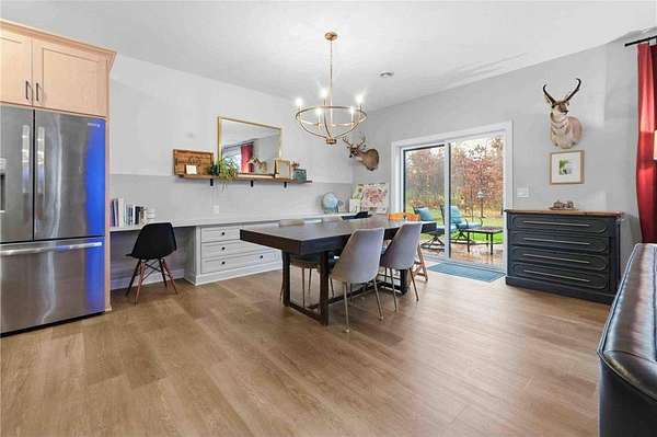 Nestled in the serene setting of Barbeau Rd Estates, this stunning custom-built 4-bedroom, 3-bath home sits on a beautifully wooded 2.57-acre lot, offering the perfect blend of privacy and convenience. Thoughtfully designed with modern living in mind, this home features high-end finishes throughout -- including upgraded maple cabinets, quartz countertops and tile backsplash in the kitchen and master bath, a cozy gas fireplace, and custom built-in lockers for everyday organization. Enjoy the ease of having four bedrooms, a loft, and laundry all on one level, ideal for today's lifestyle. The spacious three-car garage provides plenty of room for vehicles, storage, and all your Northwoods toys. Outside, an irrigation system keeps the landscaped yard lush, while the wooded surroundings create a peaceful retreat.