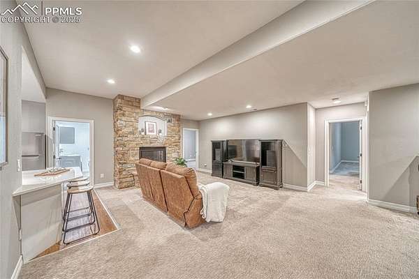 FULL CUSTOM REMODEL AVAILABLE FOR LOAN ASSUMPTION! This gorgeous rancher in Cherry Creek Crossing on 2.7 acres combines modern upgrades with thoughtful design, offering a turnkey opportunity on a private lot. Nearly every detail has been enhanced. The reimagined entry sets the tone with a tiled patio, cedar shiplap, modern lighting, & custom pivot door. Inside, open floor plan w/ refinished white oak hardwoods, recessed LED lighting, vaulted ceilings, & gas fireplace w/ custom woodwork. An office, expanded pantry, and upgraded laundry with storage add convenience. New kitchen features quartz counters w/ waterfall edging, vent hood, custom lighting, solid wood cabinets w/ hardware, built in island outlet, dbl oven, gas range, & modern fridge. Large master suite w/ private walk out, newer carpet, barn door & attached renovated bath w/ quartz counters, new lighting, waterfall shower heads, soaking tub, and walk in closet. Two additional bedrooms on the main level are great for families. The spectacular lower level features a full kitchen-fridge, dishwasher, microwave, & wine fridge-along with an upgraded junior master suite, extra closet, & brand new full bath, creating a true guest or multi-generational retreat. Exterior improvements maximize curb appeal and outdoor living. New roof & gutters, fresh paint, & epoxied garage floors with added storage, & EV plug. New composite deck w/ custom railings, stairs, & lighting overlooks a leveled yard with grass, turf play areas, & privacy fencing-unique to the area. Multiple retaining walls, new concrete pads, landscaping, & hot tub hookups complete the backyard retreat, while the front pathway is plumbed for a future waterfall. Dual furnaces, dual water heaters, dual humidifiers, an upgraded electrical panel with exterior shut-off, & a hot water recirculating pump with bathroom sensors. Modernized outlets, fixtures, dusk-to-dawn exterior lights, and illuminated front house numbers.