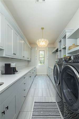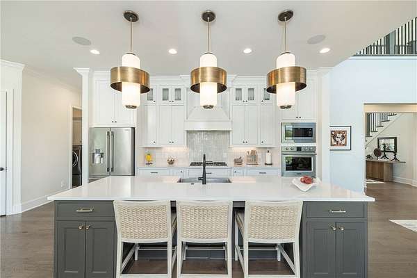 - Attic, Built In Features, Ceiling Fans, Central Vacuum, Eat In Kitchen, Granite Counters, Pantry, Programmable Thermostat, Quartz Counters, Split Bedrooms, Walk In Closets, Wet Bar, Window Treatments, Wired For Sound