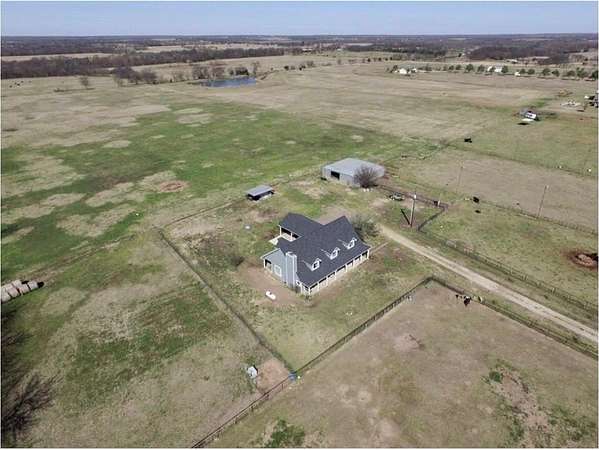 If you're looking for peaceful country living with plenty of space to spread out -- this place has it all! Just a quick 1.5-mile drive to the interstate and about an hour from Dallas, this property is the perfect mix of quiet, rural life and easy access to town. The spacious home has already had all the big updates done for you -- Pella windows, HVAC, roof, exterior doors, bathrooms, and concrete patio -- so you can move right in and start enjoying it. Sitting on 25.51 unrestricted acres, there are three fenced and cross-fenced pastures ready for your animals. The barn is set up with three stalls, hay storage, a tack room, and it has both water and electricity. There's even a lighted arena for riding, training, or just having fun. The yard is fully fenced and dog-proof too, so your pets can roam safely.