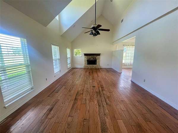 Inside, you'll love the open layout, vaulted ceilings, and all the natural light from the big windows. The living room has gorgeous hardwood floors and a cozy gas log fireplace -- perfect for relaxing or entertaining. The main bedroom is extra spacious with a remodeled ensuite bathroom and a huge walk-in closet you'll love. Plus, the refrigerator, washer, and dryer all stay with the house. This one really checks all the boxes for space, comfort, and convenience -- don't miss your chance to make it yours!
