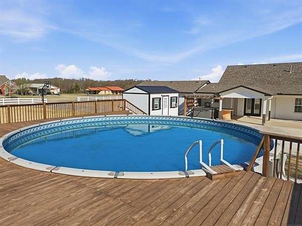 Welcome to your farmhouse retreat-where wide open space, natural light, and peaceful surroundings come together to create the perfect place to live, grow, and gather. Situated on 2.5 acres in a private and highly desirable area, this property offers the best of country living with quick highway access and nearby amenities, along with plenty of space for animals, gardening, or simply enjoying the outdoors. This beautifully built 4-bedroom, 2-bath home is filled with natural light and features a spacious living area with an open, airy feel that's perfect for everyday living and effortless entertaining, along with a stunning kitchen complete with granite countertops, modern finishes, and ample room for cooking and gathering. The detached, fully finished and air-conditioned office provides a private and versatile space for working from home, running a business, or creating a studio. Step outside to a covered patio ideal for entertaining, a dog run for your furry friends, and a large above-ground pool with a jacuzzi that creates the ultimate backyard retreat-perfect for summer gatherings or relaxing evenings under the stars. If you've been dreaming of space, functionality, and a peaceful setting, this property truly has it all.