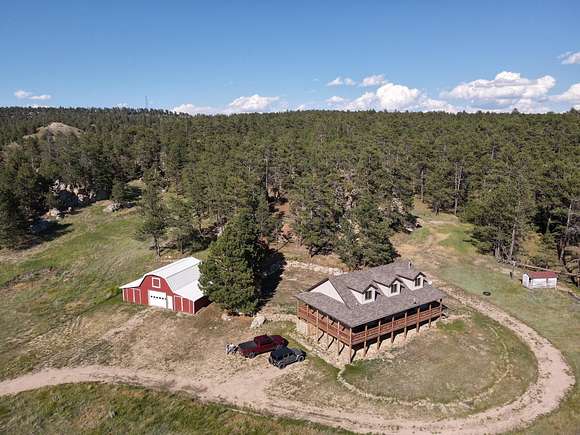 HUNTING, FISHING, PRIVACY, (on this property from Highway there is a Dirt & Gravel easement its about Two miles to the property.) it's all here on the beautiful four bedroom two- and one-half bath, with 40 Acres No Covenants, sitting right next to BLM land on the North side of Keyhole Lake, Property borders BLM land and has some of the best views in the state, custom build home has two bedrooms on the main floor with a large loft sitting area. Off the main floor is a covered wrap around deck for your entertaining of friends or to just sit back and enjoy, large loafing barn with five stalls and tack room 126 x 20 with corrals also has another loafing shed and corral of 20x 50, don't miss this opportunity to own this perfect property. This Property has A assumable VA Loan that Is at 2.65%. IT IS A MUST THAT YOU BE A VETERAN TO ASSUME LOAN.