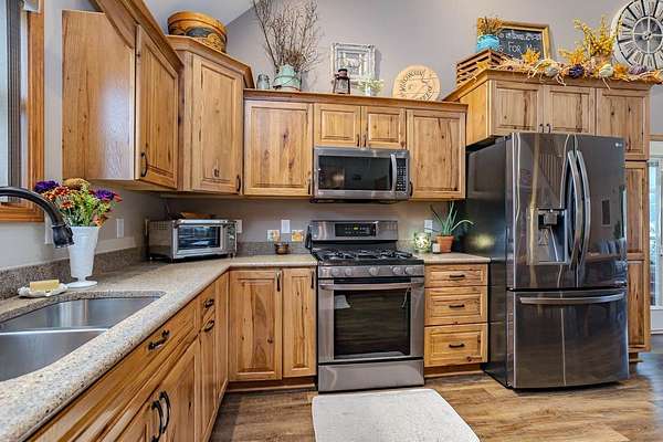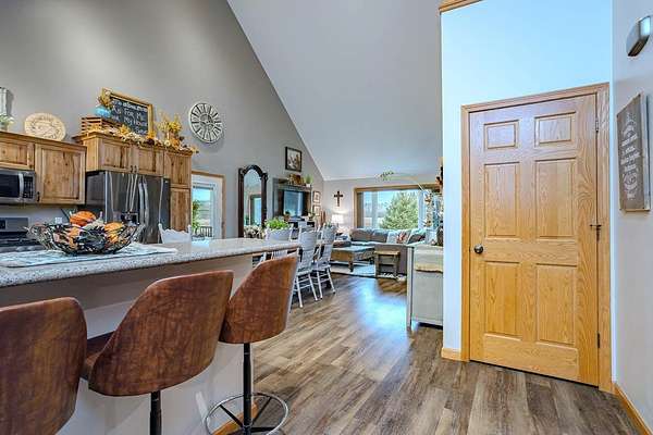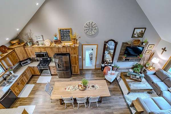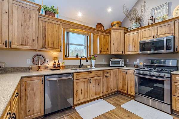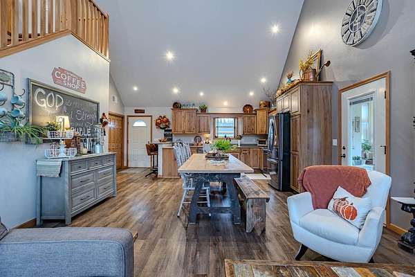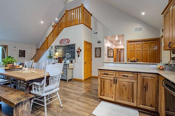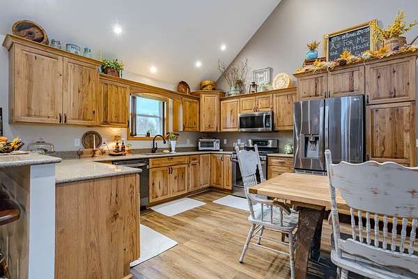 Tucked away where Lincoln, Marathon, and Langlade Counties meet, this modern country retreat feels like a secret worth discovering. Imagine waking up watching deer graze from your Taj Mahal of a back yard deer stand or the sounds of laughter while your friends and family kayak and swim in either of the two large ponds or while hosting your very own pond hockey tournament in the winter! This home was quality built for those who crave both comfort and connection: to the land, to their animals, and to a simpler, richer way of living. With a first-floor master suite, zero entry from the garage or front door, and a mudroom complete with a dog wash, every detail was designed for ease. The 2 large ponds, food plots & 3 enclosed deer stands, and a ladder stand make this haven a hunters or nature lovers dream. 68.86 acres are enrolled in MFL-closed until 12/31/36 for significant tax savings. An immaculately clean heated & insulated 27x30 garage and a stunning 27x40 shop features epoxy floors and drive through capability with overhead doors complementing the homes quality craftsmanship. With Starlink or Spectrum internet, radiant in-floor heat, forced air, and brand-new 2025 roofs, it's move-in ready. Properties like this, where modern comfort meets wild serenity, rarely come to market. Don't let this one slip away. Home and Shop have new roofs 2025. Home was built in 2017 by Schwanz Custom Homes. The 28' X 40' detached workshop was built in 2021 with a 5,000 gallon holding tank, 10' walls (2' X 6' exterior walls) & includes a separate 300 gallon LP tank (owned), with 9x15 & 9x8 garage doors. The free-standing fabric storage shed is also included. Home has 3-zone heating with efficient in-floor heat throughout the main level and attached garage, hot water radiators to heat the second level, and central A/C throughout the entire home. Spacious kitchen with hickory cabinetry, ample cabinets, granite counters & breakfast bar, energy-efficient stainless kitchen appliances, and a walk-in pantry. There's a 3-season room overlooking the backyard apple & pear trees and blueberry shrubs. Upper level loft has built-in shelving and a reading bench. Additionally there's a large 28' X 15' bonus room offering an ideal space for a home gym, office, playroom or other hobby space. Also included is an owned water softener, a separate owned 1,000 gallon LP tank for the home.