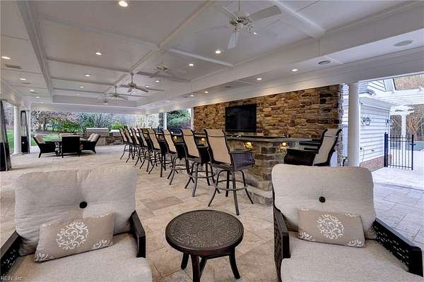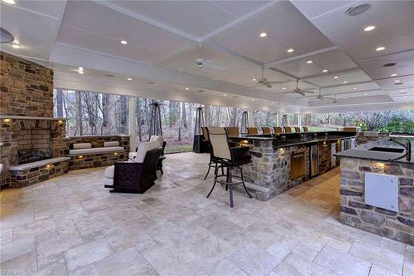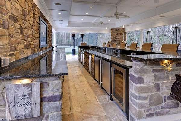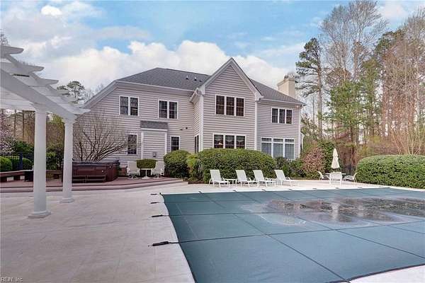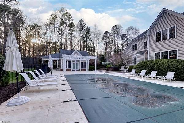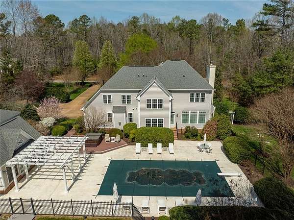 An impressive property in the highly sought after The Retreat. Privately set on over 3 acres, offering the perfect blend of elegance and resort-style living.Outdoor amenities include an impressive ~2,000 sq ft party pavilion with a full bar, TVs, Chef-quality grill and fireplace! The sparkling pool and pool house,hot tub, tennis court, and shuffleboard court create endless opportunities for entertaining and recreation. Inside, the exceptional floor plan features a gorgeous office with built-in bookshelves, formal living and dining, an expansive chef’s kitchen with stainless steel appliances and a large family room with fireplace. Upstairs, the luxurious primary suite offers a spa-inspired bath with dual vanities and huge soaking tub. Three additional bedrooms share two full baths with huge bonus room plus office over the garage. Enjoy the rare combination of privacy, space, and upscale lifestyle, all within 20 min to Downtown Historic Williamsburg or 40 min to Richmond!