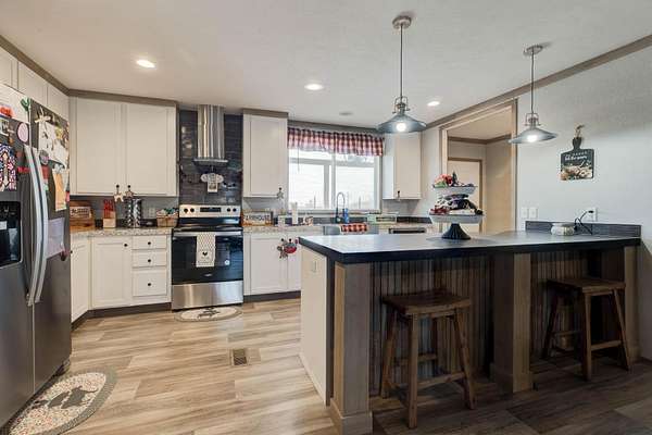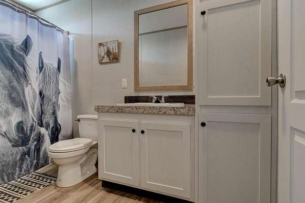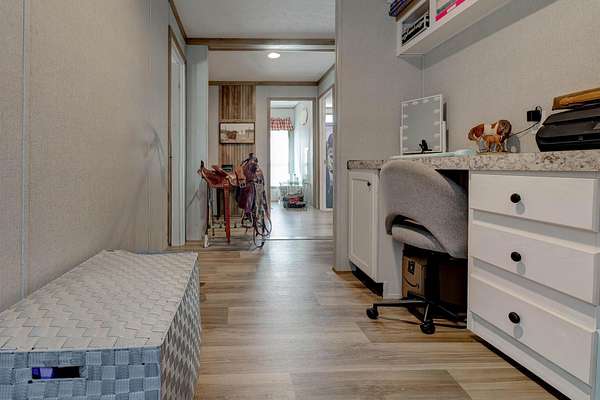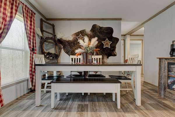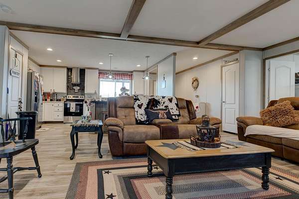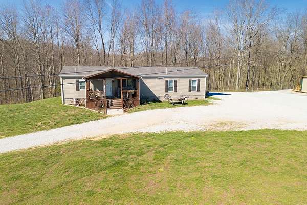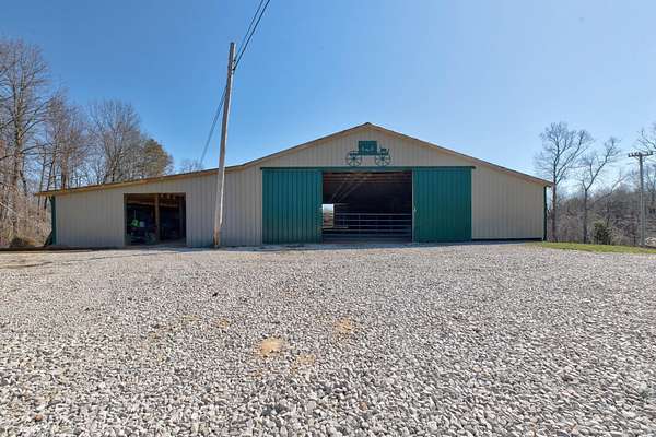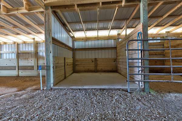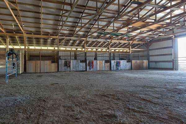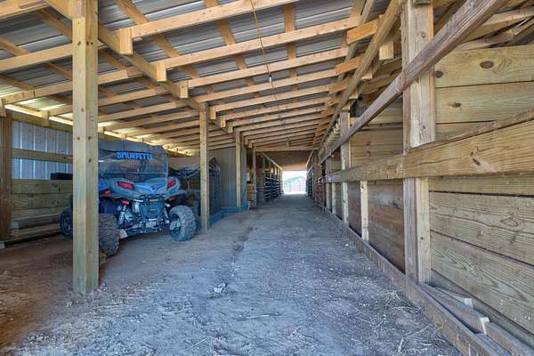 Welcome to an exceptional equestrian's dream! Set on 19 rolling acres, thoughtfully designed for both refined country living and serious horse enthusiasts. At the heart of the property sits a 2022 modern farmhouse-style doublewide, offering 3 bedrooms, 2 full bathrooms, and approximately 1,820 square feet of inviting, well-crafted living space on a permanent block foundation. Inside, the home blends warmth and functionality with elevated farmhouse finishes throughout. The spacious kitchen serves as a true centerpiece, featuring a rustic center island, ample cabinetry, and included appliances-perfect for gathering and entertaining. The living room showcases beautiful wood beams across the ceiling, adding character and charm to the open-concept design. A built-in office desk provides a convenient and stylish workspace without sacrificing living area. The primary suite offers a private retreat, highlighted by a large master bath complete with an elegant soaking tub and a separate shower for a spa-like experience. With central HVAC, all-electric utilities, and a backup propane wall heater, comfort and efficiency are seamlessly combined. Equestrian facilities on this property are truly top-tier. The impressive 76x100 barn, built in 2023, is designed to meet the needs of both hobbyists and professionals alike. It features 19 stalls, a spacious hay loft, and a full indoor riding arena-allowing for year-round training regardless of weather conditions. Outside, a dedicated riding ring and partially fenced pasture provide ample space for turnout and continued development. An additional outbuilding offers valuable storage or workshop space, further enhancing the property's versatility. Whether you're operating a horse facility or simply seeking a private, well-equipped retreat, this property delivers the perfect blend of modern farmhouse comfort and premium equestrian amenities.