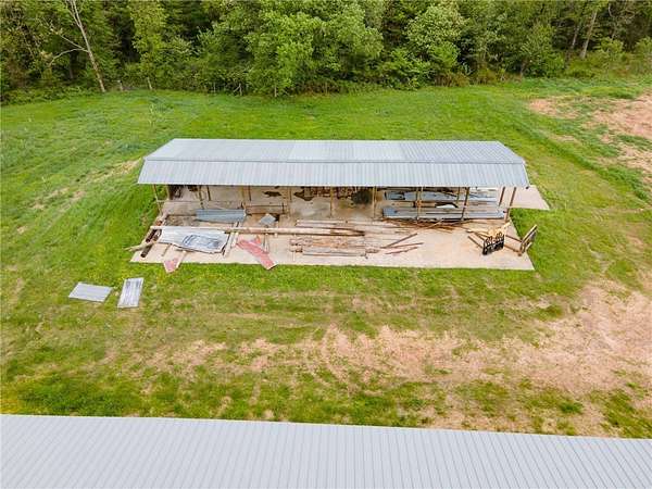 27MOL AC. In the Boston mountains on pave State Highway 265 about 20 minutes south of Fayetteville and close to Devils den State Park and recreation area. 10 to 15 minute drive to Prairie Grove, Greenland and West Fork. Property has a mix of pasture and woods and several building sites. Property includes a 40 x 90 shed with concrete floor and two overhead doors. New ozark electric power service and Washington water service in 2023. Endless possibilities on this property (RV park), campground, farmstead, prepped complex or even a business location. Chicken house that shows up on Google maps are no longer there. Property has elevation and gentle terrain. A beautiful slice of NWA.