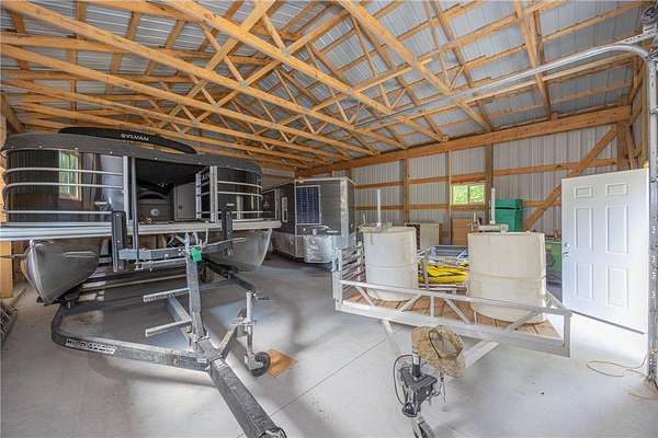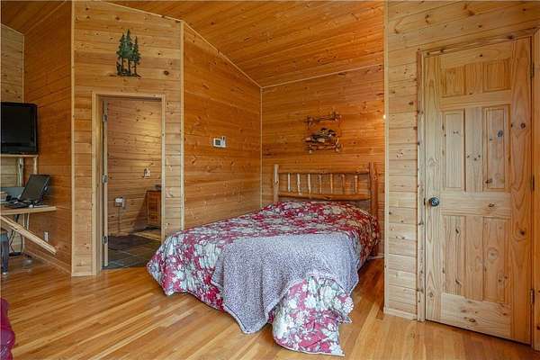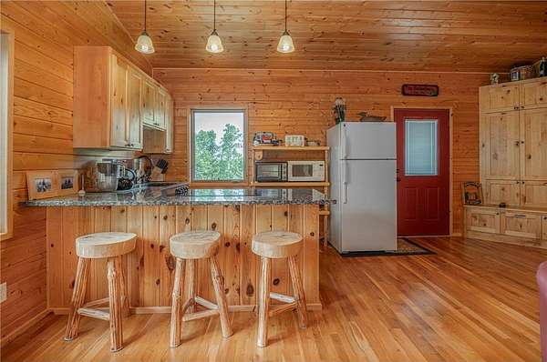 Tucked among towering trees with peaceful views of Baby Lake, this half log-sided studio brings the Up North experience to life. With granite countertops, a kitchen peninsula, and vaulted ceilings wrapped in knotty pine, the interior radiates rustic charm and thoughtful simplicity. Wood floors stretch across the open space, and a 3/4 bath offers convenience without crowding. Downstairs, the walkout lower level is ready for your finishing touch, whether that's extra sleeping space, a recreation room, work shop, or storage. A trail winds its way down to the shoreline, inviting you to enjoy nature, launch a kayak, or just sit by the water. A generous garage with a cement apron makes it easy to store all your lake toys, while a large detached pole barn provides space for boats, gear, or future projects. There's even additional land with potential for a future building site, giving you room to grow or dream. Whether you're looking for a weekend cabin or a base camp for something more, this is a property that gives back in every season.