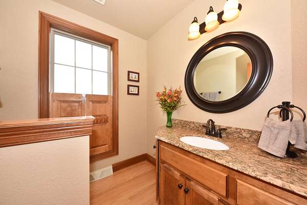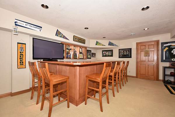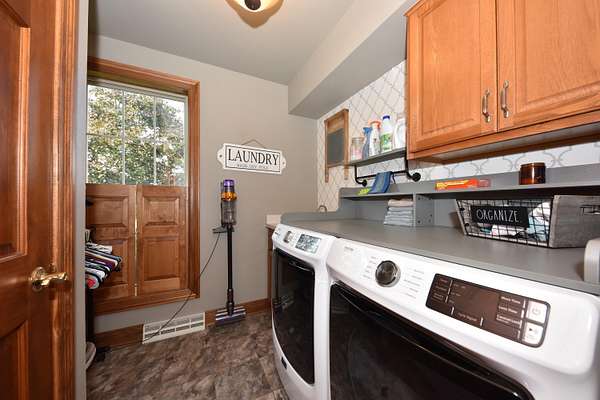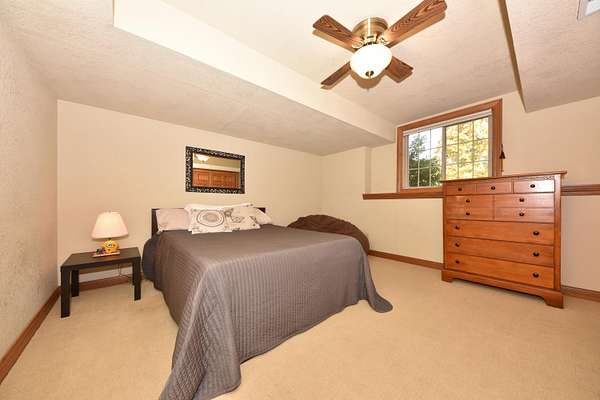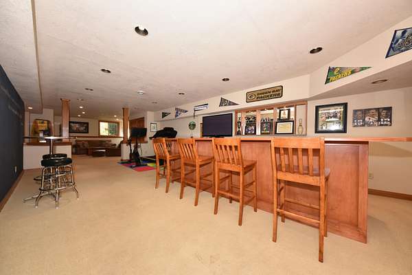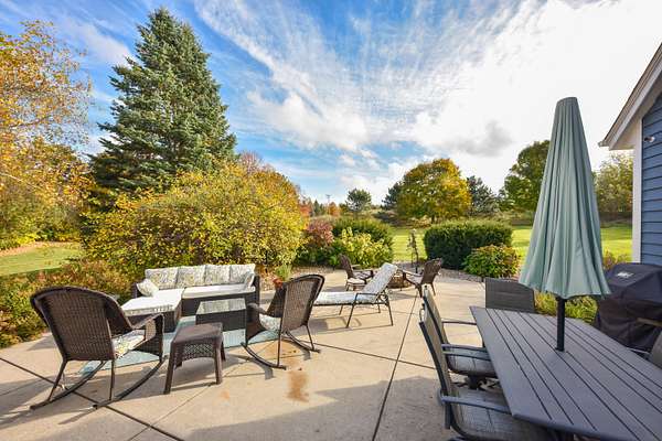 This beautifully maintained home blends warmth & function. The custom maple kitchen shines with granite counters, tile backsplash, & newer appliances, opening to an inviting living area with vaulted ceilings & a focal point natural fireplace! Enjoy a main-floor master suite with travertine marble bath, walk-in shower, & Jacuzzi. Roomy bedrooms, main-floor laundry, & a finished lower level rec room with a bar, addt'l bedroom, full bath, exercise room, & storage add flexibility. The meticulously kept outdoors offers expansive lawn & private patios for entertaining. Updates include a newer roof, driveway, chimney stack, & an extra 2.5-car garage! Ideally located near Holy Hill, great restaurants, golf courses, scenic parks, & super easy access to Hwy 41. Move-in ready perfection awaits!