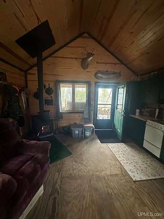 Located in the heart of Michigan's Upper Peninsula on proven hunting grounds, this secluded cabin offers the ideal base camp for Northwoods recreation. The 16' x 24' cabin, built by Barker Construction in 2015, sits on 14+ acres and features 2x6 construction, a knotty pine car-siding interior, and a block crawlspace foundation. The building is also wired for Generator Plug-In. Also includes a newly constructed outhouse sitting on a pumpable concrete septic tank, multiple cleared areas for additional buildings, and established shooting lanes throughout the acreage. A covered porch overlooks the pond adjacent to the cabin, which has been dredged and expanded within the last five years, creating a peaceful setting to relax after a day outdoors. Just up the road is a Grouse Enhanced Management Site. The area is also well known for bear and deer hunting, making this an excellent recreational property. Access is available by vehicle via Old US-2 when the snowmobile trail is not open. Winter access is available by snowmobile or tracked vehicle. A potential easement from US-2 may be obtainable through neighboring parcels for expanded access options. A rare opportunity to own a well-built cabin and acreage in a premier Upper Peninsula outdoor location