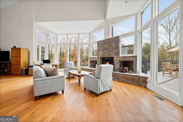 Welcome to one of Cascade Heights' most extraordinary properties, a 2.7-acre private estate offering sweeping lake views, architectural character, and modern upgrades rarely found this close to the city. Set on a secluded, wooded lot that gently slopes toward the water, this home delivers the feeling of a luxury nature retreat just minutes from downtown Atlanta. A long, circular drive leads to a striking modern facade, where clean architectural lines, oversized windows, and a dramatic clerestory tower create a timeless first impression. Inside, natural light pours through all-new windows, framing tranquil views of the lake and surrounding trees from nearly every major living space. The layout is designed for both refined entertaining and relaxed everyday living, with seamless flow between indoor and outdoor spaces. The gourmet eat-in kitchen is a true centerpiece, featuring abundant cabinetry, generous prep space, and stunning sightlines to the lake, making morning coffee, casual meals, and evening gatherings feel like a private resort experience. Downstairs, a massive in-law suite-style basement offers exceptional versatility. Whether used for multi-generational living, guest quarters, a private office, gym, media room, or future rental suite, this level dramatically expands the home's functionality and long-term value. Out back, the property opens into a lush, park-like oasis with mature trees, landscaped grounds, and uninterrupted water views. With 2.7 acres at your disposal, there is room to create gardens, outdoor entertaining areas, a pool, or simply enjoy the peaceful privacy that is nearly impossible to find inside the Atlanta perimeter. Major upgrades have already been completed for the next owner, including a brand-new roof and all-new windows, delivering energy efficiency, structural peace of mind, and enhanced resale value. Located in the heart of Cascade Heights, this home offers quick access to Tyler Perry Studios, the Westside BeltLine expansion, downtown Atlanta, and Hartsfield-Jackson International Airport, while still feeling worlds away from the noise. This is more than a home. It is a private retreat, a legacy property, and one of the most distinctive offerings currently available in Southwest Atlanta.