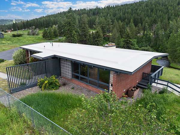 Welcome to the T Bar A Ranch, one of Kalispell, Montana's most prominent and historic properties. Boasting 66 +/- acres of irrigated pasture lands, mature timber, a half mile of Ashley Creek frontage, and only a few miles from downtown Kalispell, this truly is one of the finest estates in Montana's famed Flathead Valley. Perfectly positioned overlooking both Ashley Creek and the surrounding ranges of mountains sits an impeccably maintained, recently updated Frank Lloyd Wright - inspired home that combines Prairie and Usonian themes. Designed by one of Frank Lloyd Wright's apprentices from Bozeman, MT, this home was thoughtfully designed over multiple years to best utilize its positioning to capture the most natural light and maximize its efficiency in all seasons. The spacious 2900 +/- sq ft home features three bedrooms, two bathrooms, modern kitchen, and spacious living room which walks out to a large deck where one can sit and listen to the water flowing in nearby Ashley Creek or watch the resident deer and turkey stroll by. While many tasteful updates have been done over the past several years, the owners have done an outstanding job maintaining the timeless design and style of this eloquent home. Outside, you will find an oversized 2-car garage and nearby Quonset facility suitable as an indoor equestrian facility or ideal to store equipment or the necessary "toys" to take full advantage of all the recreation opportunities available in the Flathead Valley. Adjacent to the residential improvements lie 34 +/- acres of well-improved and irrigated alfalfa pasture which typically provides two hay cuttings per year as well as grazing for cows in the late summer and fall. Also near the home is a productive apple orchard with mature tress possibly dating back to when the property featured one of Kalispell's first dairy farms in the early 19 th century. The area surrounding the T Bar A Ranch property offers an abundance of outdoor and recreational activities with something for just about everyone. The famous Rebecca Farms equestrian facility is less than 2 miles away. Anchoring the region is Glacier National Park and its 1 million acres of public lands available for an array of activities including hiking, biking, horseback riding, skiing, fishing, and hunting. Nearby Flathead Lake is the largest natural freshwater lake west of the Mississippi with over 200 sq miles of water and 185 miles of shoreline, offering some of the best boating and fishing in Montana. Whitefish Mountain Resort, Blacktail Mountain Ski Area, Turner Mountain Ski Area, and the Montana Snowbowl are all short drives away for those seeking to take advantage of the nearby ski slopes during the winter months. The city of Kalispell has a population of about 25,000 people and offers a diverse range of restaurants, bars, and shopping options as well as Glacier Park International Airport which offer daily flight services to several large airports across the west.