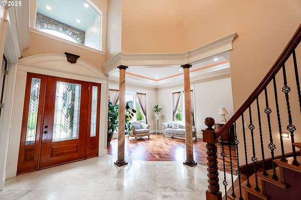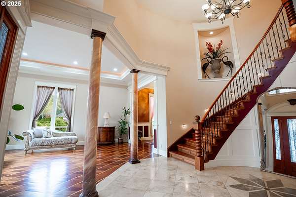 Come see this Exquisite Luxury Estate in a serene Natural Beauty setting by Clackamas River yet minutes from the stores, shops, restaurants and freeway! LOCATION!! Nestled On beautiful 2+acre flat lot. You will be Welcomed by Grand Entry with 20 foot ceilings and a luxury staircase! HUGE Shop. In ground Pool. Sauna. Jacuzzi. Office. Theater room with wet bar area. This Property has Everything you could desire for all the seasons of NW! New exterior paint! Remodeled tiled bathrooms! This is a Custom built property built with top quality materials and finishes! Top Rated Clackamas Schools! If you like to entertain There is plenty of room to host events! The driveway is in the works of getting paved from the main road to the property. With all the upgrades and options were eery detail has been beautifully designed, you will not want to miss this opportunity to experience a lifestyle where detail and options is everything!