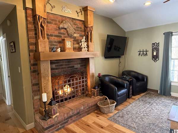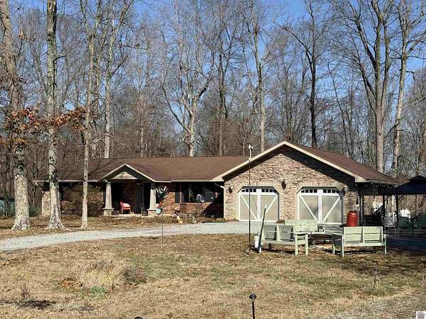 This property is a must-see to truly take in everything it offers. Nestled at the end of a long private driveway, is a charming 3-bedroom, 2-bath brick ranch home on 3.28 acres with 3 out buildings 2 with electric. Inside, enjoy stunning hickory wood floors, a heated tile kitchen floor, a tankless propane water heater, and a cozy propane fireplace for chilly nights. Perfect for entertaining guest, unwind by the fire pit or start summer early in the heated 18x40 inground saltwater pool. Beautiful new windows and doors allow for the perfect natural lighting and views of the wildlife. The land also features two apple trees, one peach tree, green and red grape vines, plus two blackberry and two blueberry bushes. Not added to the square footages is an extra office/room in the garage. The back yard and side are fenced with cattle panels.