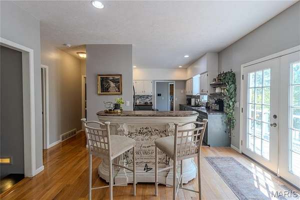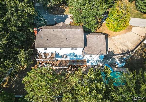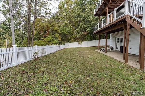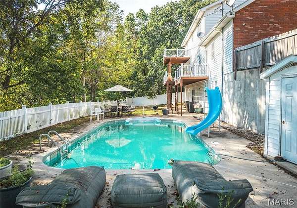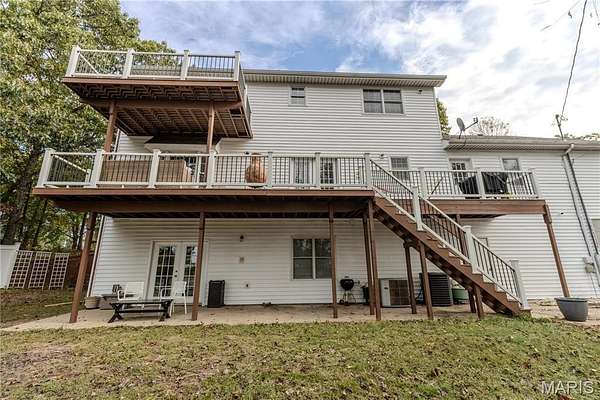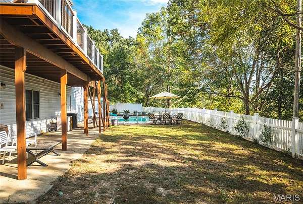 This stunning 5 bed, 3.5 bath colonial-style home sits in a peaceful neighborhood & offers the perfect blend of classic charm & modern updates. With its tall columns, inviting covered front porch & welcoming entry foyer, this home makes an impression from the moment you arrive. Step inside to find hardwood flooring throughout the main level, a bright & spacious living room, a formal dining room & a large kitchen with plenty of cabinetry & counter space. French doors lead you out to a brand-new backyard deck that overlooks the sparkling inground pool & fenced yard, creating a private retreat for relaxing or entertaining. Upstairs, the primary suite is a true oasis, complete with vaulted ceilings, natural light & a spa-like bathroom featuring a soaking tub, separate shower & dual vanities. The additional bedrooms provide flexibility for guests, family, or even a home office. Throughout the home you’ll find beautiful updates, blending style & function. The finished basement adds even more living space with a cozy wood-burning fireplace, wet bar & direct access to the patio—perfect for game nights, holiday gatherings, or quiet evenings by the fire. Outdoors, the 7.6-acre lot gives you both privacy & room to roam while still being just minutes away from shopping, restaurants & only 10 minutes to the Fort Leonard Wood front gate. This property truly has it all—elegance, comfort, outdoor living, and a location that combines convenience with peaceful surroundings.
