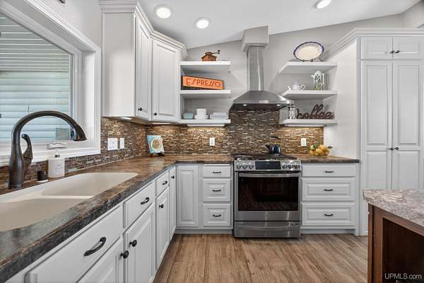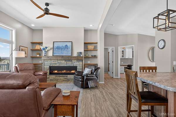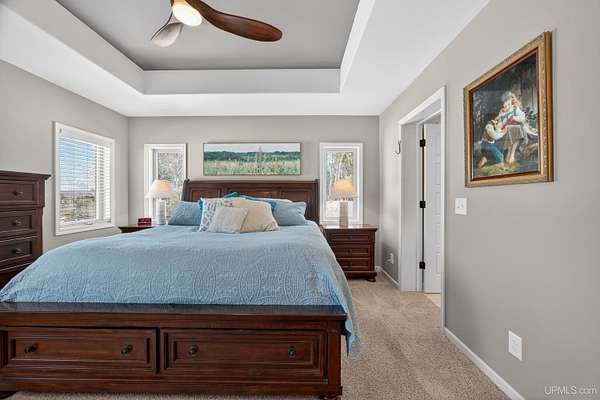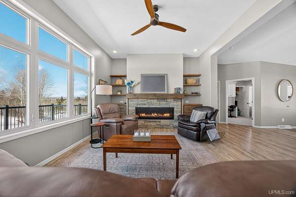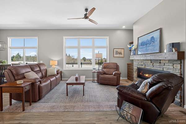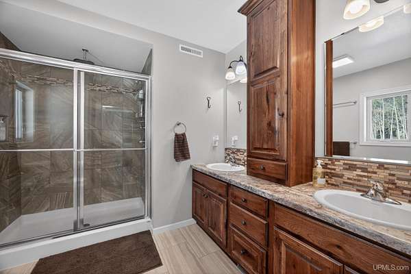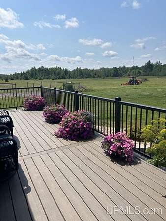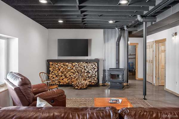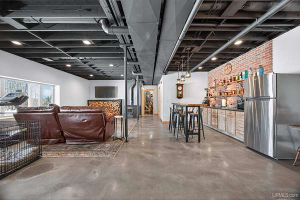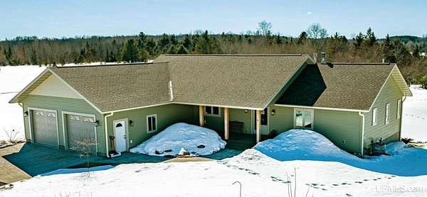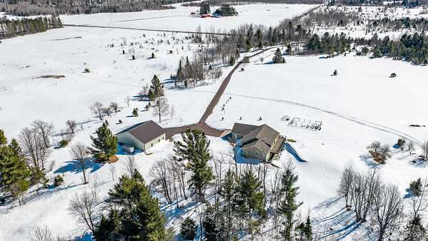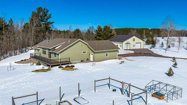 Set in the peaceful countryside of Tapiola, MI, this high-end 4 bedroom, 3 bathroom home offers over 3,300 finished square feet of beautifully designed living space on 80 wooded acres. Located just 3 miles from Otter Lake, approximately 15 minutes from Chassell, and 20 minutes from Houghton. The main level features an open-concept kitchen and living area designed for both everyday comfort and elevated entertaining. The gorgeous kitchen features a walk through pantry, stainless appliances, and excellent workspace, while opening to the living room, which is anchored by a stunning gas fireplace and opens directly to the full-length Trex deck. From both the living room and the deck, you can enjoy beautiful, wooded views that bring the surrounding landscape right into the home. The main floor also includes the primary suite with its attached bath and rain shower, along with a second bedroom and additional full bathroom. The walkout lower level offers an impressive open-concept living and entertaining space with a fantastic wood stove, a great bar area, large pantry, sauna, and direct access to the patio on the west side of the home. Two additional bedrooms and another full bathroom are located downstairs, providing excellent space for guests, household members, or flexible use. Outside, the property is fully landscaped and thoughtfully improved for enjoying all that this setting has to offer. With abundant wildlife, gorgeous, wooded surroundings, and a shooting lane with backstop, the acreage is ideal for hunting, recreation, and exploring your own land. A fenced garden with raised beds, dog kennel, and approximately a 3-year supply of split wood included with the home add even more value and functionality. The home is also wired for generator connection. Garage and utility space are exceptional, with a finished 28' x 28' attached garage and an outstanding 40' x 48' detached finished garage featuring 2 bays, one heated and fully plumbed, plus its own bathroom. The basement floor and detached garage both have in-floor heat plumbed for future boiler connection if desired. There is also a 50-amp RV hookup with drain connection for sewage.Come take a look this remarkable property that offers a rare combination of luxury, privacy, recreation, and convenience! See the 3D tour first! https://my.matterport.com/show/?m=Lw2pqLpZeTZ&mls=1 • NOTICE: All information believed accurate but not warranted. It is the Buyers obligation to inspect the property and verify all information. The buyer bears all risks for any inaccuracies. Tax information is subject to change. Taxes are not 0. References to square footage, lot size/dimensions, and age are approximate.