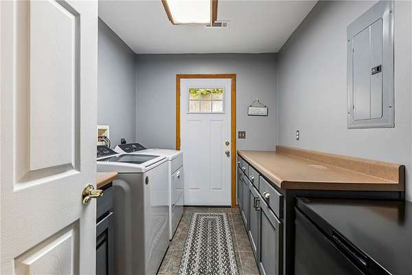 - Dishwasher, Disposal, Dryer, Electric Range, Exhaust Fan, Plumbed For Ice Maker, Propane Water Heater, Range Hood, Refrigerator, Washer, Water Heater