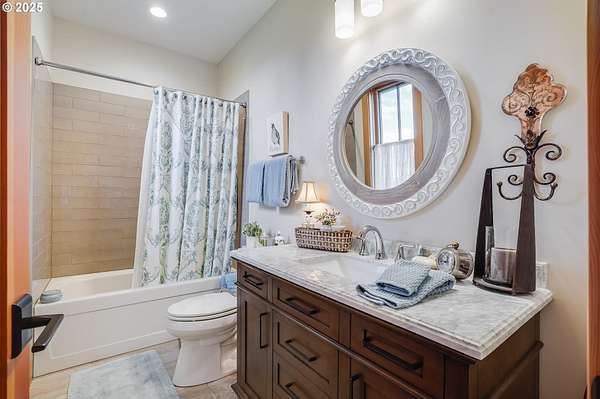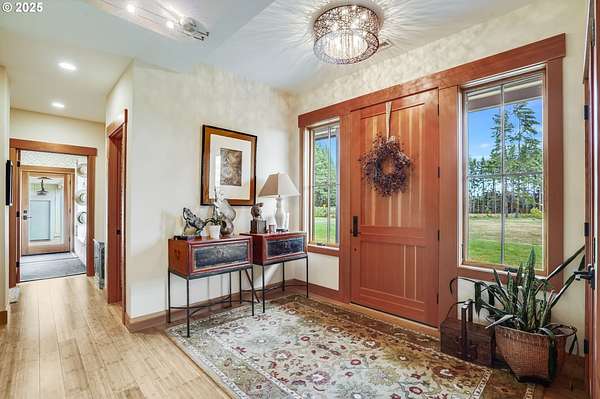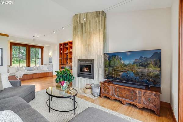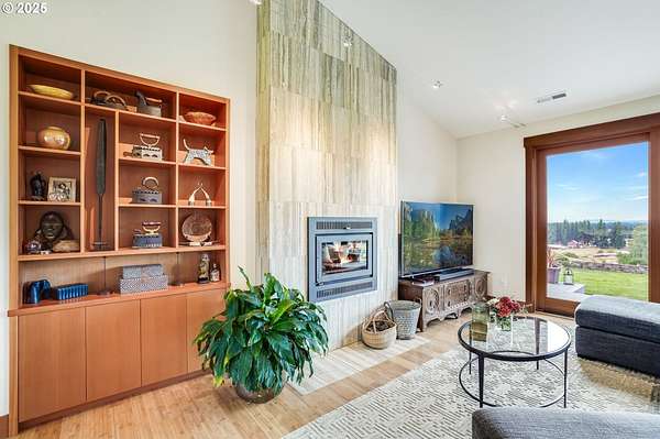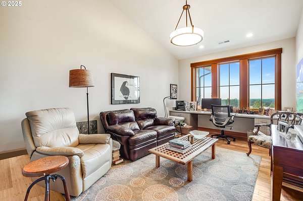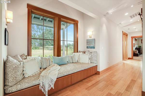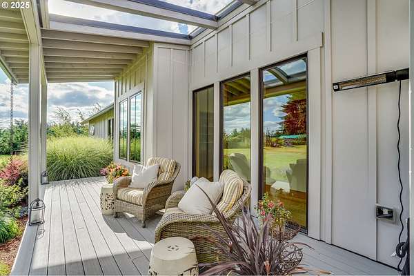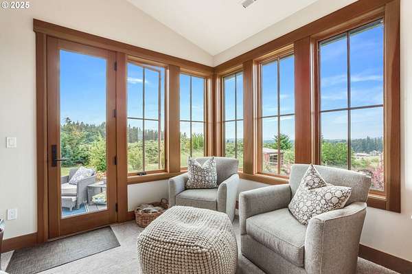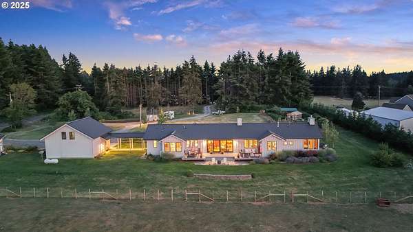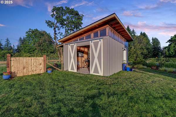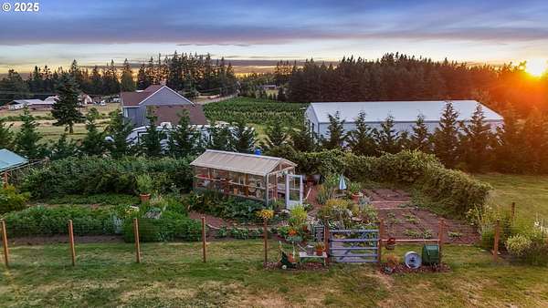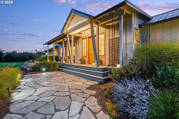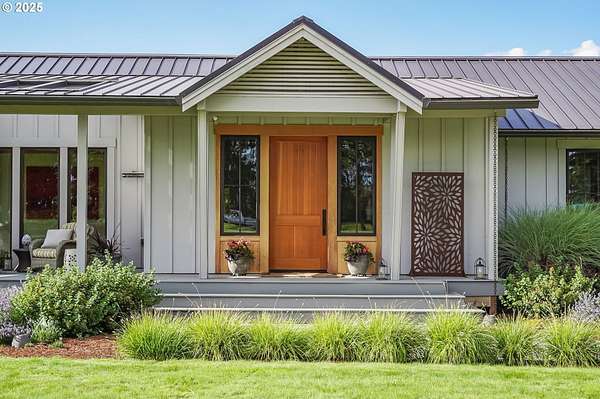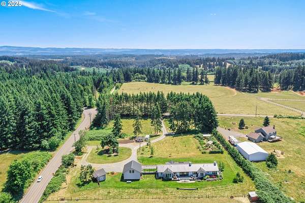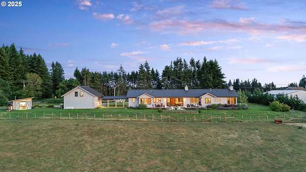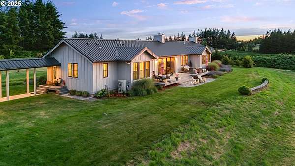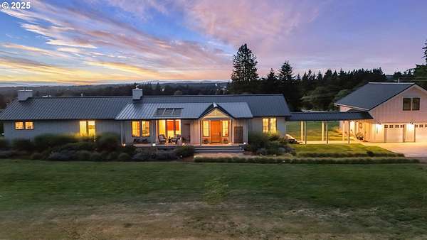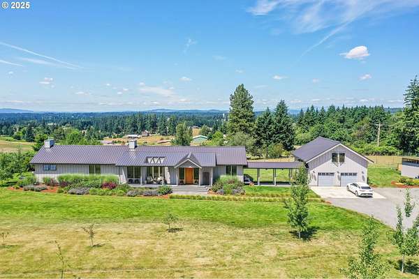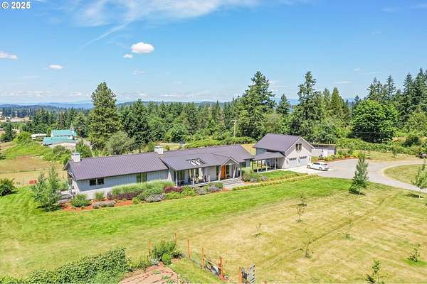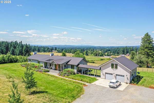 Welcome to Sage Farm, a peaceful 6 acre retreat with panoramic views of downtown Portland and the surrounding territory. Custom-built in '21 by architect owner with intention and care, this single-level home was designed for comfort, ease, and connection to its surroundings, inside & out. The exterior was thoughtfully designed for low maintenance, reducing costs and time spent on upkeep while preserving the home's modern aesthetic. Inside the layout balances openness and privacy, with vaulted ceilings, warm natural light, and thoughtful touches. The kitchen is anchored by waterfall-edge quartz island, a picture-perfect view window, & walk in butler's pantry. Marvin sliding doors open wide from both sides of the great room, inviting seamless indoor-outdoor living. The den offers a great flexible space. The primary suite includes private access to a spa and deck, a perfect place to unwind while taking in the landscape. A 2nd bedroom features its own ensuite bath, offering privacy and comfort for guests or extended stays. The home's dual heat pumps provide zoned, energy-efficient comfort year-round. Outside, the stunning landscape was professionally designed by a landscape architect to complement the home's architecture and natural beauty. From the breezeway (a nod to a cherished family home in the Northeast) to the privacy wall that doubles as an art feature, every inch of Sage Farm reflects the values of intentional living. The detached studio apartment above the garage includes a full bath and kitchenette, perfect for guests, creative use, or multi-generational flexibility. You'll also find a 4000 sqft irrigated garden, a greenhouse, and space for a future barn or arena. Customize the grounds & suit your lifestyle: keep livestock, grow more, or enjoy the stillness. There's much more to discover. Ask for the full list of curated features and finishes. Sage Farm is the kind of home that makes you want to stay a while and enjoy a life of peace and understated luxury.