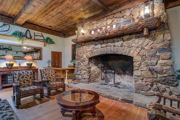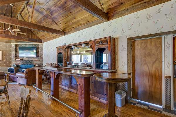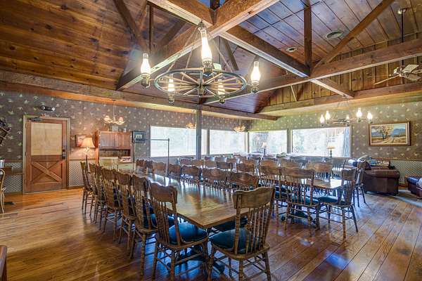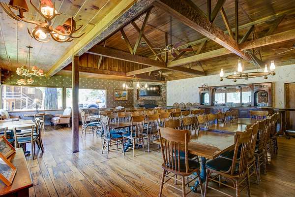 A separate two-story guesthouse offers ten uniquely themed suites, each with private baths and cozy verandas that capture the beauty of the surrounding forested landscape. Every room is thoughtfully furnished in rustic mountain and Western decor, ensuring guests enjoy both comfort and charm. Currently used as short-term vacation rentals.