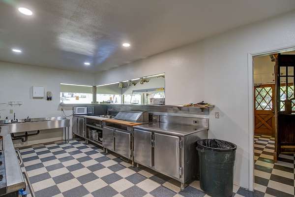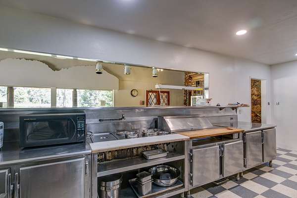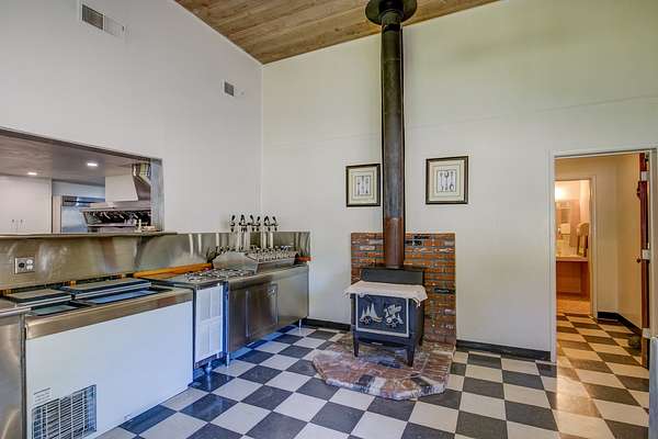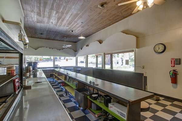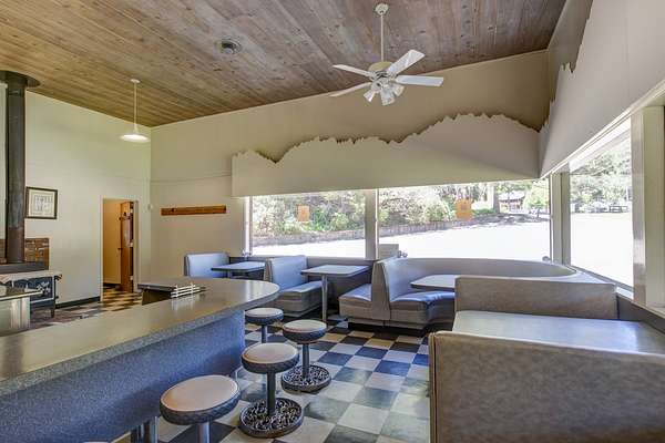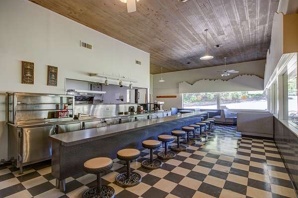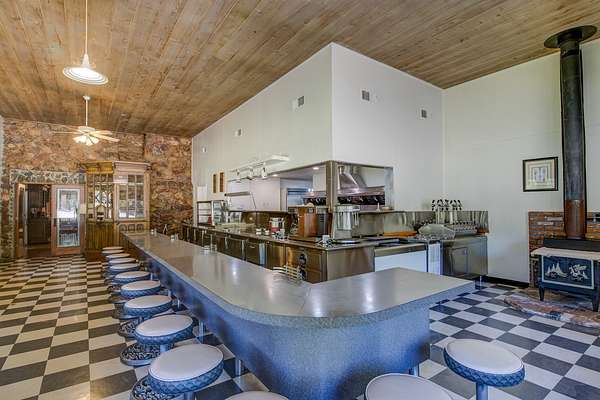 The main lodge is a charming blend of nostalgia and functionality. Step inside to a vintage 1950s-style diner and a grand lounge, spacious enough to feature two opposing fireplaces, a bandstand, dance floor, and intimate conversation nooks. A fully equipped commercial kitchen services both the diner and main dining room, perfect for entertaining on any scale.