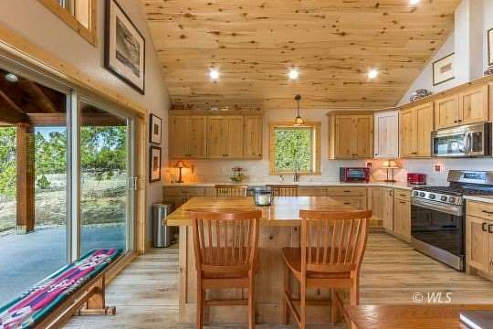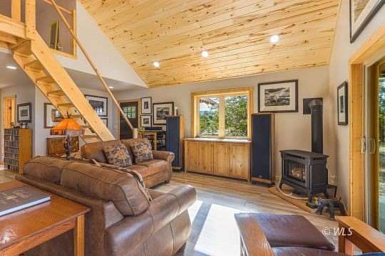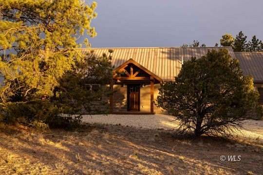 Discover a home so extraordinary, it feels custom-made for those who demand the best. Perched on 5.1 pristine acres with sweeping, unobstructed views of the majestic Sangre de Cristo Mountains, this 2022-built residence is a one-of-a-kind retreat. Step inside to be greeted by soaring vaulted ceilings wrapped in rich aspen wood, casting a warm glow over the open-concept design. Walls of glass draw your eyes immediately outward, framing an endless canvas of nature's beauty. Dual sliding doors open to a covered patio, blending indoor elegance with the serenity of nature-perfect for sunset cocktails or morning coffee with eagles soaring overhead. The kitchen is both art and function, showcasing handcrafted alder cabinetry, sleek Corian countertops, and stainless steel appliances that gleam. A ground-level primary suite provides quiet enjoyment and convenience, while the spacious loft offers the flexibility of an office, guest lounge, or creative studio-all crowned with mountain views that inspire. Every detail whispers quality: from the timeless durability of TruLog steel siding to the thoughtful flow of spaces designed for comfort and beauty. Call today to schedule a tour!