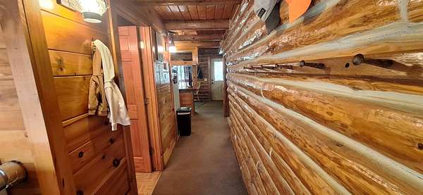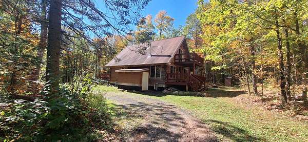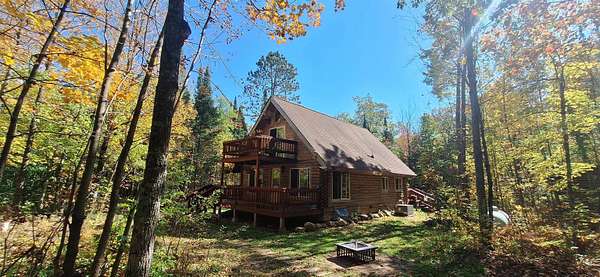 Your Private Northwoods Escape on 5+ Wooded Acres! This authentic 2-bed, 1-bath log home is where rustic charm meets modern comfort. Vaulted ceilings and an open layout create an airy, inviting space, while the wood stove adds cozy warmth. The skylighted loft offers flexible space for an office, guest area, or creative studio. 2025 upgrades include a NEW furnace & AC for year-round comfort. A rare poured basement provides dry, usable storage space and peace of mind. Two outdoor living areas--the main deck and upper balcony--let you soak in tranquil forest views. 2-car garage for all your toys and tools. With endless trails and recreation at your doorstep, this is the ultimate Northwoods lifestyle property. Whether you're seeking a full-time retreat, weekend getaway, or retirement dream, this one delivers. Don't miss it!