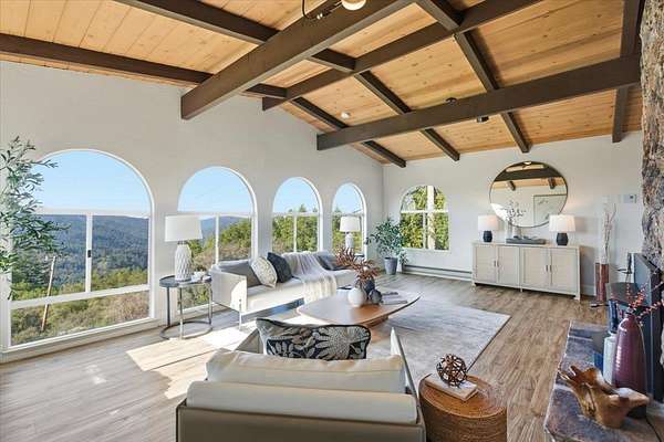 Experience an exceptional blend of stunning views & prime location in this Saratoga residence, ideally situated near downtown Saratoga's restaurants, shopping, coffee, wine tasting, & more. Near top-ranked Saratoga schools! On appx 2.3 acres, this 4 bedroom home offers ~2,688 sq ft of thoughtfully designed living space with breathtaking panoramic views stretching from Monterey Bay to the San Francisco Bay. The gourmet kitchen features a center island, shaker cabinetry, granite counters, & modern stainless appliances, seamlessly connected to the dining area & overlooking a massive deck & spectacular vistas -ideal for everyday living & entertaining. The expansive living room showcases vaulted ceilings, a fireplace, and dramatic picture windows that fill the home with natural light. The spacious primary retreat includes a walk-out balcony, en-suite bathroom with walk-in closet, creating a peaceful sanctuary with unparalleled outlooks. Enjoy movie nights in the separate family room complete with a project screen! Smart, energy-efficient features include owned solar w/ 2 Tesla batteries, backup generator, 2 EV charging stations, newer roof, whole-home water filtration & ozone system, & high speed fiber internet. Relax in the bubbling hot tub surrounded by tranquil surroundings.