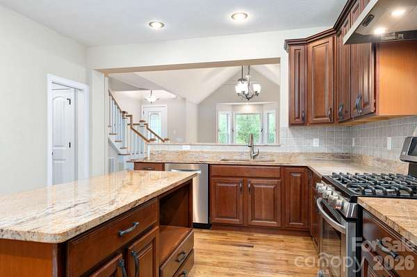 - Dishwasher, Exhaust Hood, Gas Range, Oven, Refrigerator, Washer/Dryer