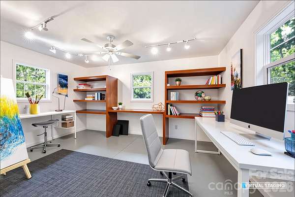 Welcome to 17 Bohemian Lane, a perfect escape from the everyday. A true wooded haven, this spacious home is situated on 1.72 acres at the end of a private lane, offering plenty of room to work, play, and create. Step inside this move-in ready home and experience the open, flowing floor plan with cathedral ceilings and large windows that fill the space with natural light. Enjoy entertaining in the chef-inspired kitchen or unwinding after a long day in the private, retreat-like primary suite on the main floor. Upstairs you'll find two bedrooms and a large bonus room that is ideal for movie nights. Not to be missed- the detached two-story studio provides incredible bonus space and is perfect as an artist's studio, a private home office, home gym, or play space. Relax on the covered back porch and enjoy the soothing sounds of birds and a babbling waterfall while taking in the lovely landscape. Just minutes to shopping and 20 minutes to Downtown Asheville. Private Lane- NO Drive-bys.