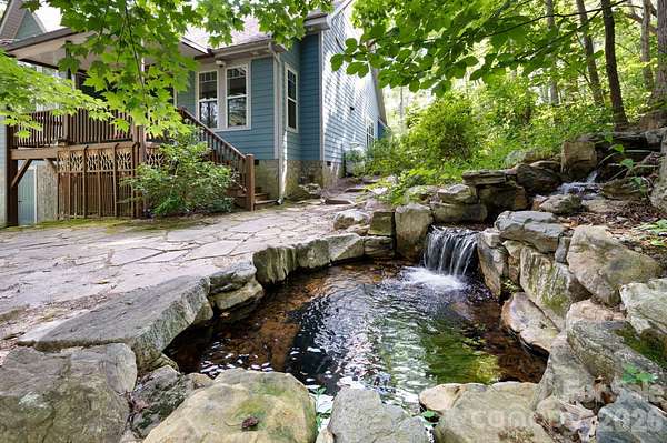 - Artificial Waterfall, Creek/ Stream, Pond(s), Private, Sloped, Wooded