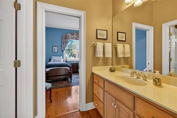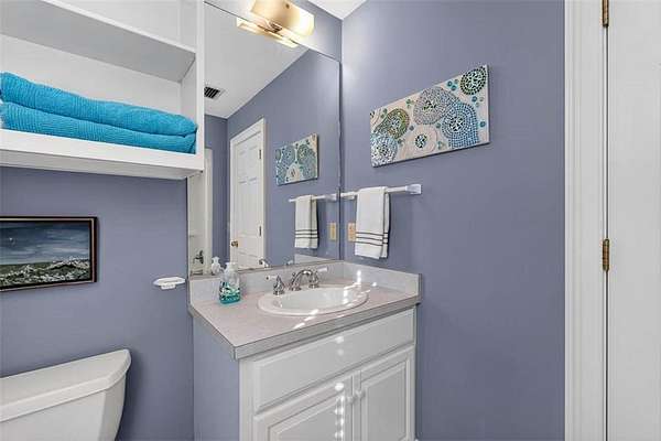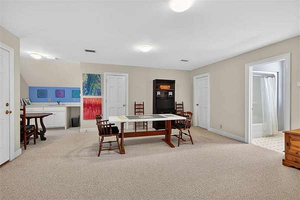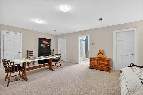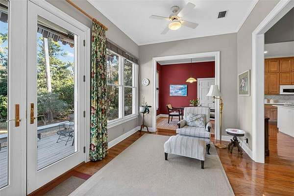 Relax in the sunroom overlooking the back deck and tranquil lagoon beyond, complete with a small boat launch and canoe--perfect for enjoying coastal living right in your backyard. A detached (but connected to the house with a breezeway) two-car garage includes a storage room, while the bonus space above offers a large bedroom, full bathroom, sink with space for a small kitchenette, and generous walk-in closets--ideal for guests or a private retreat.