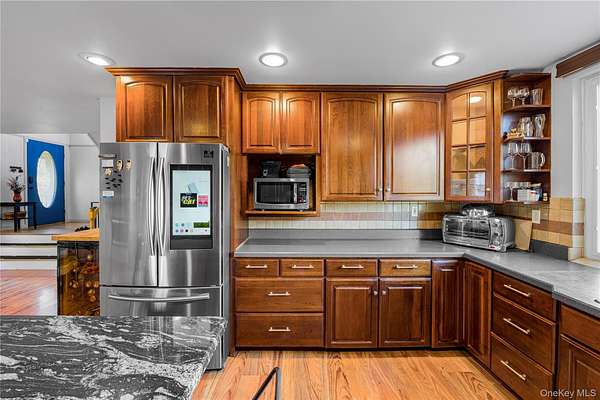 Welcome to 17 Brendalla Court - a stunning colonial-style home tucked away at the end of a peaceful cul-de-sac in Wallkill, offering the perfect blend of privacy, comfort, and versatility. Set on a generous 1.6-acre lot with sweeping Hudson Valley mountain views, this spacious 3-bedroom, 2.5-bath home features a bright, open-concept main level that seamlessly connects the kitchen and dining area to a new backyard patio and fire pit - perfect for entertaining or relaxing under the stars. The main floor also includes a separate laundry room for added convenience. Upstairs, the thoughtfully designed layout offers a private primary suite with en suite bath on one side, and two additional spacious bedrooms on the other, separated by a cozy open living space ideal for lounging or gathering. Step out onto the upstairs balcony to take in breathtaking views, or head outside to enjoy the above-ground pool and its own dedicated pool house. Central air ensures year-round comfort, while the impressive garage space caters to car enthusiasts, contractors, or hobbyists - including an attached garage with a separate office, plus a detached 2-car garage with an unfinished upper level, perfect for transforming into a guest suite. Love the outdoors? You'll appreciate the fenced-in portion of the yard, the separate chicken coop, tool shed, and the expansive land ready for your dream garden. Just a short drive to New Paltz, Gardiner, Highland and other local towns, this property is ready to welcome you home.
