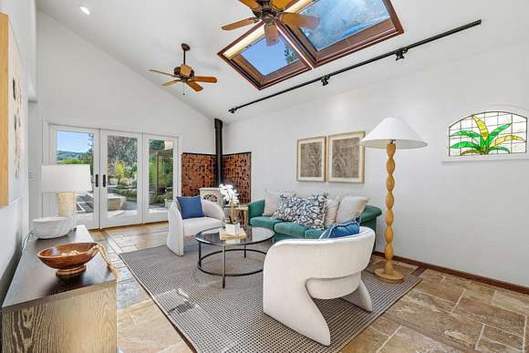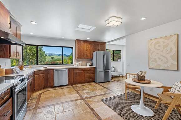 This beautiful, sunlit home in the hills overlooking Corral De Tierra, has 5 bedrooms, 2.5 baths, 2680 sq ft and sits on a 4.3 oak studded acres with marvelous views of Mt. Toro in the distance. The home has wonderful natural light that greets you as you enter the front door to the central atrium. The formal living room has oak floors, a redwood fireplace and wraparound deck that looks across the green hills to Castle Rock. The primary suite has high ceilings, a walk-in closet and redwood bathroom, with a shower and sunken bathtub that look onto the atrium. The kitchen and family room overlook the pool with oak trees that frame Mt. Toro in the distance. The kitchen has been updated with limestone countertops, large kitchen sink, new faucet and appliances. The flooring is interwoven with tile and wood. There is a formal dining room that also looks onto the central garden. The wing next to the family room has four bedrooms with views. The bathroom has redwood walls and vintage ceramic tiles in the shower and around the two sinks. The home has solar, a greenhouse and two car garage with space for a workshop. This home is ready for its next owner to move in and enjoy the sun, lifestyle and marvelous views that this home in Corral De Tierra has to offer