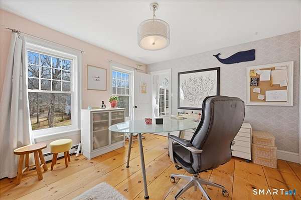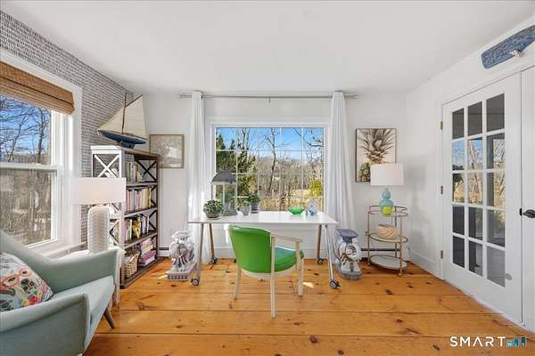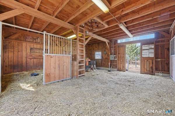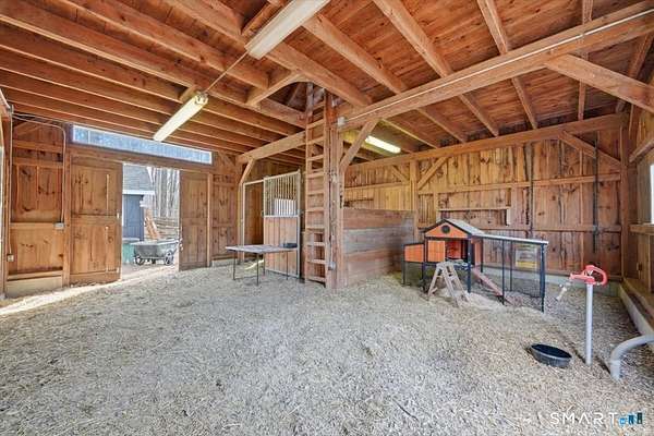 Escape to this serene nearly 6-acre homestead perfectly positioned at the end of a quiet cul-de-sac bordering a protected land trust preserve. This property offers the ultimate in privacy and a deep connection to nature with no through-traffic. The home is a modern farmhouse full of light and air, featuring an open floor plan and stunning wide-plank pine floors throughout. With 3 bedrooms, 2.5 baths, and three cozy fireplaces, it is the perfect weekend retreat or residence.Beyond the home, the property offers incredible versatility for a potential mini-farm or private homestead. A handsome 4-stall post-and-beam barn with a loft and a separate gardening/tack shed provides ample space for hobbies, while a large pasture with no-climb fencing ensures unobstructed, picturesque views. Whether you envision a private horse property, a professional-grade artist's studio on the level acreage, or simply a peaceful buffer from the world, this estate offers rare potential in a prime location with easy access to miles of riding and hiking trails.