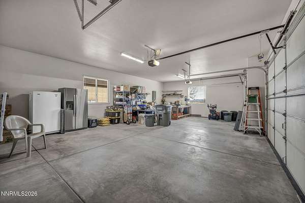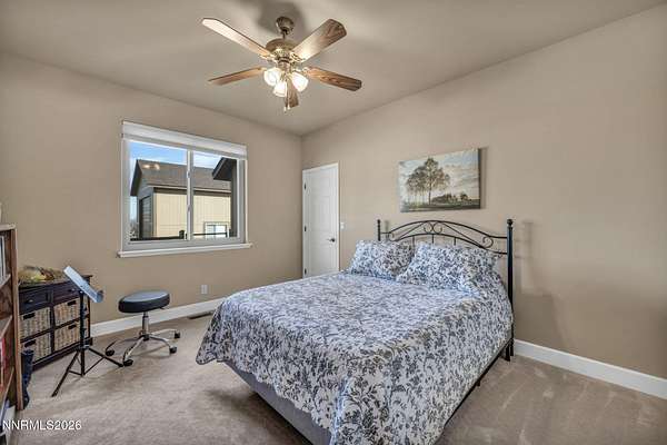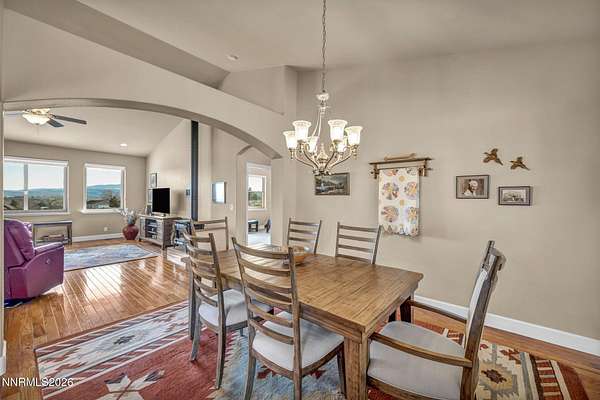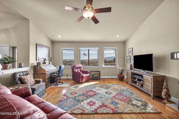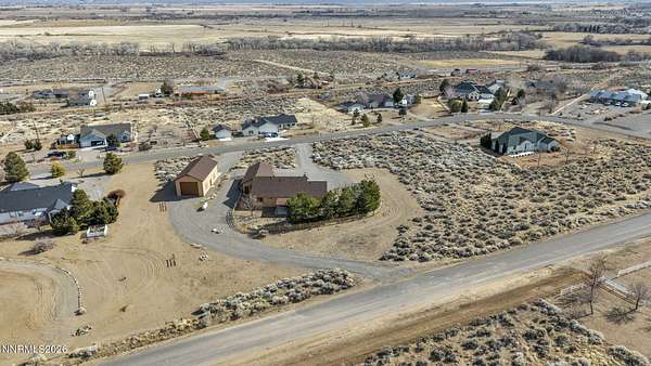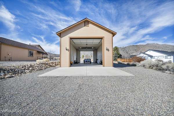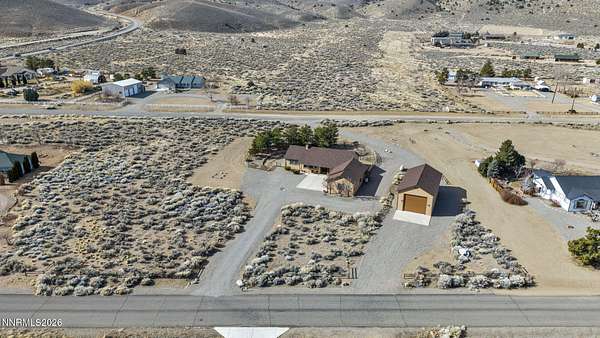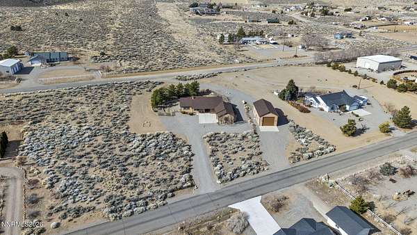 A home that makes Nevada feel like Nevada! Set on 2 acres with stunning valley views, 17 Colony Estates Dr is built for the move out west lifestyle without giving up modern convenience. The home offers a split floorplan with soaring ceilings and real wood floors. Meticulously cared for with big-ticket upgrades already handled, such as a brand-new roof on both the home and RV garage, fresh paint inside and out, brand new well pump, brand new Andersen Renewal windows throughout, plus a new Generac system for peace of mind no matter the season. The property fronts Colony Estates Dr and backs to Upper Colony Rd, giving you easy access to the large detached pull-thru RV garage with 14' doors on both ends, perfect for trailers, side-by-sides, or that motorhome you've been dreaming about. There's also a fully finished, insulated, attached 3-car garage, ready for your vehicles, workshop, or extra storage. The best part is you're still just under 30 minutes to everyday essentials like hospitals, shopping, and dining, all while living in tax-friendly Nevada with room to spread out and a view you'll never get tired of.