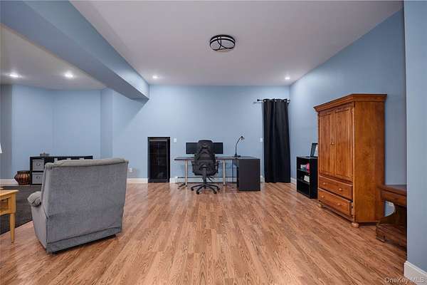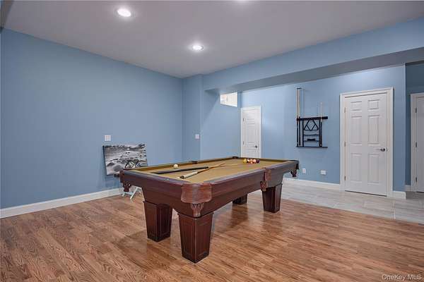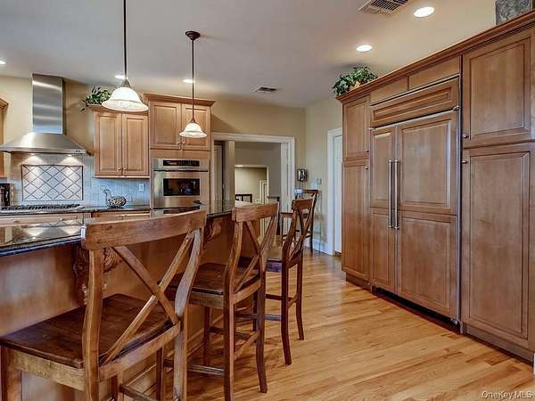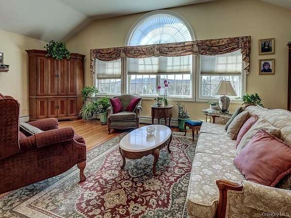 Welcome to this exceptional brick residence located in Hamilton Estates in the Town of Tuxedo, NY, where mountain views, privacy, and enduring craftsmanship define everyday living. Set on 1.6 acres at the end of a quiet cul-de-sac, this home offers approximately 6,200 square feet of finished living space, including a newly completed lower level designed for modern lifestyle needs. A circular driveway and timeless architectural lines create a confident first impression. Inside, oak flooring, solid 6-paned hardwood doors, and a solid mahogany front entry reflect quality throughout. Oversized Pella windows frame sweeping mountain views and bring in abundant natural light. The main level balances comfort and scale, offering open yet defined living spaces ideal for both daily life and entertaining. The kitchen features stainless appliances, custom cabinetry, generous prep space, and a dining area overlooking the yard - relaxed, functional, and welcoming. The owner's suite serves as a private retreat with a spa-style bath, soaking tub, and separate shower. Three additional bedrooms provide flexibility for family or guests. A separate entrance leads to a fully equipped private apartment-suite with its own bedroom, living room, and kitchen - ideal for extended family, guests, or multi-generational living. The newly finished lower level significantly expands the home's livability. Designed with entertaining in mind, it includes large open recreation areas, space for a pool table, a dedicated workout area, and a full bathroom. Fire egress windows were added during renovation, enhancing safety and natural light. Two oversized unfinished storage rooms, along with multiple additional closets, provide substantial storage rarely found in homes of this size. Outdoors, the setting is peaceful and private. The park-like property includes a 100-yard putting green, deck, and built-in grill for easy outdoor gatherings. The home abuts a wildlife easement, preserving both privacy and the natural beauty that makes the Town of Tuxedo so special. Additional features include steel I-beam construction with 10-inch foundation walls, a 350-foot drilled well producing approximately 50 gallons per minute, 17-zone irrigation system, full-house security, oil heat (above-ground tank), and a three-car attached garage. Located in the Town of Tuxedo in the Hudson Valley, Hamilton Estates offers a quiet residential setting with convenient access to major highways, commuter routes, and nearby amenities. A great opportunity to own a substantial luxury home in Hamilton Estates with meaningful square footage, structural integrity, and flexible living space.