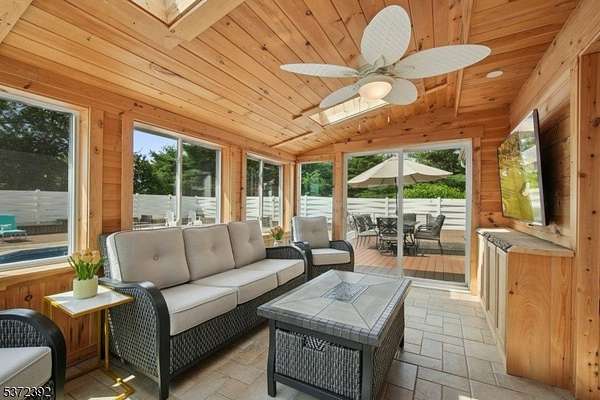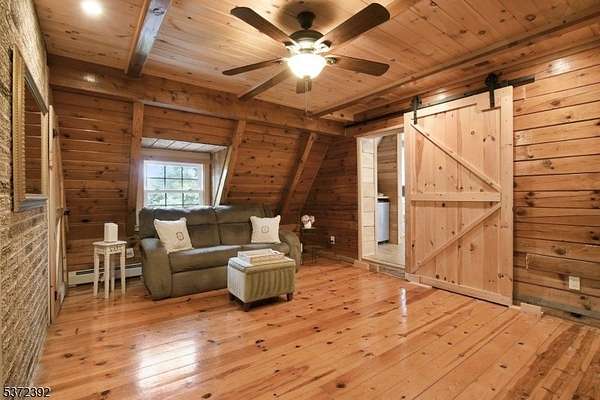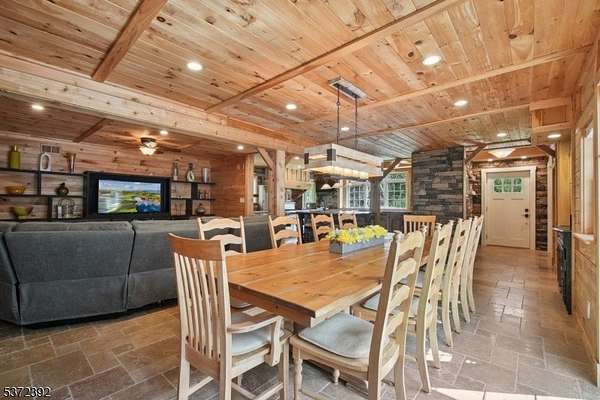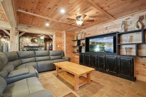 Nestled on 6.43 private acres with breathtaking mountain views, this exceptional property offers luxury living and serene surroundings. Sit on your covered front porch and enjoy the peaceful setting or take in the scenery from the backyard, which is designed for entertaining and relaxation. A sparkling swimming pool, covered patio with kitchenette, convenient bathroom and outdoor shower all make outdoor living effortless. Inside, the open floor plan is highlighted by extensive custom wood trim detail, a stunning stone surround fireplace, and a built-in wet bar - perfect for those memorable gatherings. The chef's kitchen is a true showstopper, complete with a center island, Miele coffee maker, high-end appliances, granite counters and ample space for culinary creativity. A private first-floor guest suite includes its own living room and full bathroom. Upstairs, you'll find two spacious bedrooms each with vaulted ceilings and en-suite bathrooms, along with a versatile office space perfect for remote work or study. The property is beautifully landscaped, offering a peaceful, park-like setting with ample room to roam, garden, or simply relax in nature. 2-story 75'x30' barn. Just minutes from the NYC train station, Stanton Ridge Golf & Country Club, and the scenic Round Valley Reservoir (hiking, biking, fishing), this home combines upscale comfort with convenience and natural beauty. A rare opportunity to enjoy refined country living with easy access to all the amenities you need