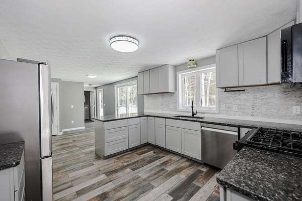 Spectacular Bow Location! Tucked away on 5 private acres, on a cul-de-sac abutting 100’s of acres of conservation land with lots of hiking and snowmobile trails. You’ll feel right at home in this spacious 3-bedroom, 3 bath colonial. The first floor includes a fully applianced eat-in kitchen with 2 pantries, a slider to large deck and big backyard, front-to-back family room off the kitchen, full bath, 1st floor laundry, dining room and another room suitable for a 4th bedroom, office or playroom. The second floor includes a primary bedroom with private bath and walk-in closet, 2 more bedrooms and a full bath. There’s another finished room in the lower level. Additional amenities include; 2 car garage, central air, propane gas heat & hot water, new leach field in 2024, new roof and solar panels (paid in full) in 2023 and plenty of parking. Good location for commuters. Quick close possible. Easy to show beginning March 5. Open Houses Sat 3/7 & Sun 3/8 11a-1p.