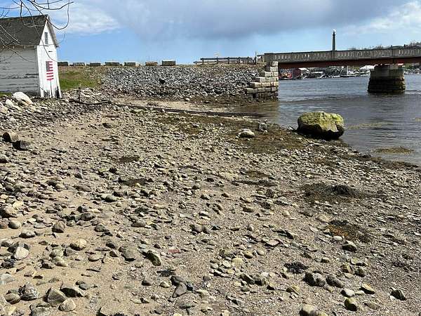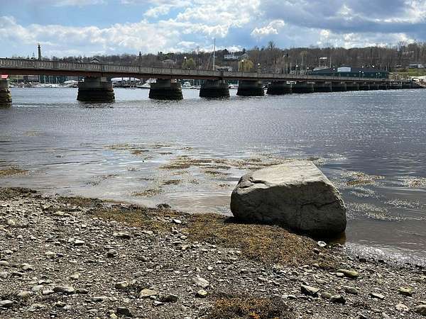 Unique 1.01-acre land lot on the Belfast Bay, perfectly situated by the footbridge leading into downtown Belfast, ME. This prime location in the Searsport Ave. Waterfront District offers both residential and select commercial opportunities, pending town approval. The lot features a rare boathouse on the shoreline, albeit in need of restoration, and a preserved original home foundation and basement covered with plastic. With a horseshoe driveway and cleared space for building, the property is ready for your dream home. Enjoy breathtaking views down the bay from this exceptional and versatile lot. An architectural drawing of a home and large garage totaling 8,000 sq. ft., designed specifically for this lot, is available to a buyer with a full-priced offer.