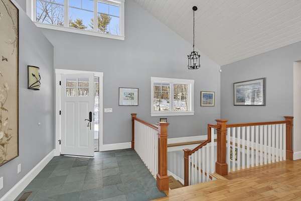 Nearly new Architect-designed home on beautiful Damariscotta Lake. This comfortable home is full of light thanks to its many well-placed windows. It actually shines. It was built with high-end materials and has space for everything. Plenty of storage over the oversized garage plus your own interior workshop. Beautiful bedrooms, 2.5 baths, well applianced kitchen, living room with a Mendota gas fireplace and spacious family room plus the mechanical room was designed for extra space if needed and all with views of the water and your own dock. Jefferson is in Lincoln County incorporated in 1807 when Thomas Jefferson was President. It enjoys all the amenities of Popular downtown Damariscotta. The property abuts Wavus, a Leadership School with its many open acres. Kieve, its other main campus is also in Jefferson. This is a wonderful spot on the West side of the Lake, so it enjoys beautiful sunrises and the sunset illuminates the East shore. The cove opens to the Great Salt Bay and is one mile long from this shore to the other side. Halfway over to the East shore is the deepest part of the Lake at 105 feet and the Lake is 13 miles long.