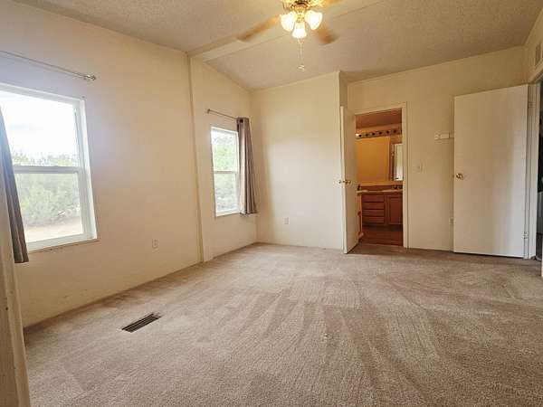 3 Bed 2 Bath 1500 Sq Ft Nestled in the peaceful high desert of Catron County, this 28.1-acre property offers privacy, functionality, and direct access to nature. This home sits on a permanent foundation and directly borders state land to the west, with a gate to access point for crossing over. It offers an ideal setting for outdoor enthusiasts and licensed hunter in Unit 15.Home has Double-pane windows and a vent free propane furnace for backup heat It has an excellent well with insulated pump house and a new septic systemCarport is all-metal structure for 2 vehicles.RV Hookup has electric, water, and septic dump ready for your guest with travel trailers. Multiple faucets across the property for convenience.