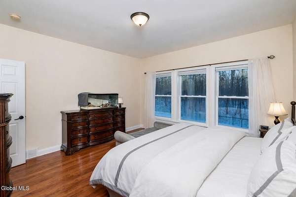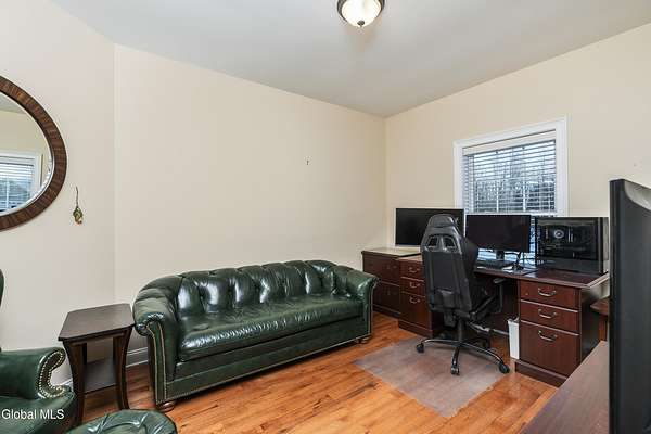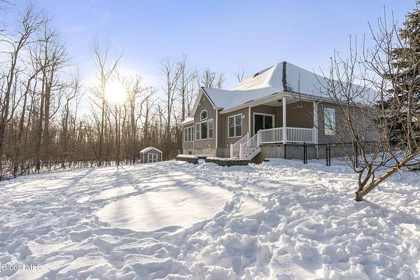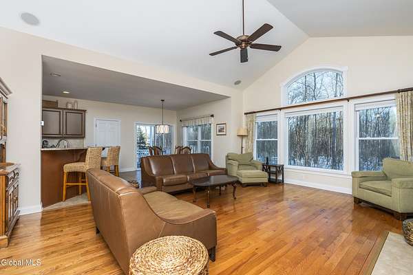 Experience the ultimate in privacy and prestige at 17 Knottingley Place, an exceptional 3-4 bedroom estate set on 2.23 acres in the highly sought-after Chapel Hill neighborhood. Offering over 3,000 square feet of finished living space, this residence is thoughtfully designed to balance elegance, comfort, and functionality. Light-filled and architecturally striking, the home features a soaring open-concept layout accented by gleaming hardwood floors, a cozy gas fireplace, and a beautifully appointed chef's kitchen with granite countertops and extensive custom cabinetry-ideal for both everyday living and upscale entertaining. The luxurious primary suite is a true private retreat, complete with a spa-inspired soaking tub and a distinctive stained-glass window that adds character and charm. A beautifully finished, bone-dry lower level offers exceptional flexibility for additional living space, a home office, gym, or media room. Additional highlights include a fully fenced yard, oversized two-car garage, custom blinds throughout, and meticulous maintenance throughout this 2010-built home. Ideally located within the Shenendehowa School District, the property offers peaceful wooded seclusion while remaining close to everyday conveniences. A rare opportunity to own a refined, private retreat in one of the area's most desirable locations-this is a must-see offering.